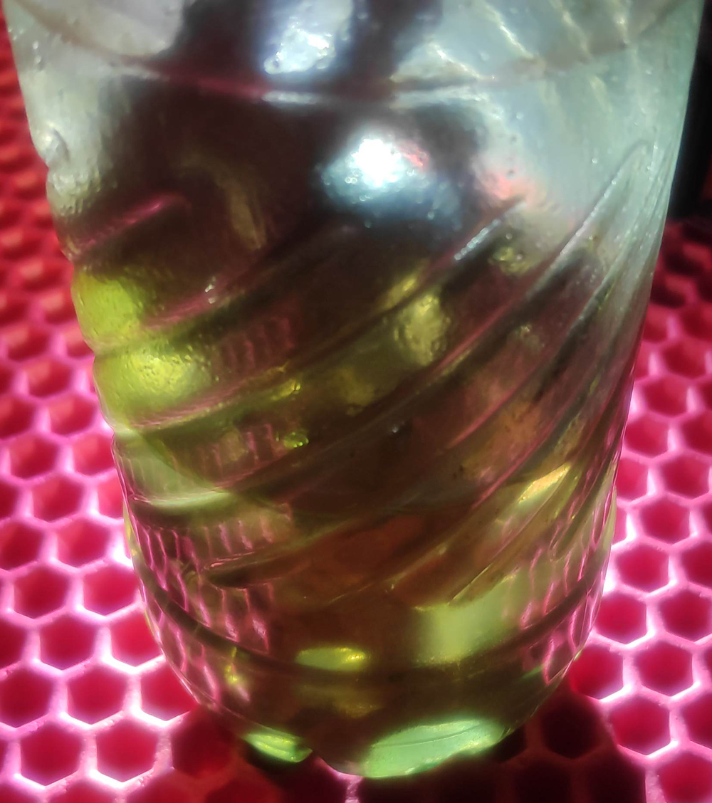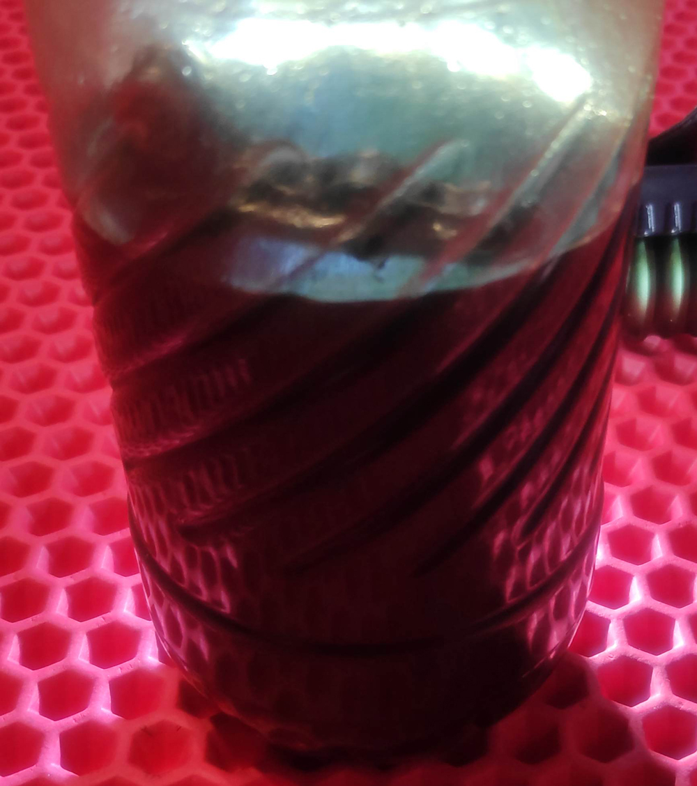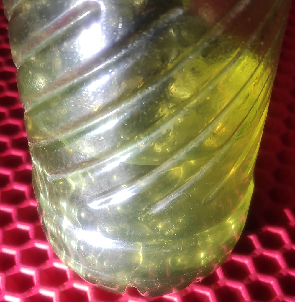 4) Сливаем загрязнённый растворитель в литровую бутылку, которая будет служить отстойником. Повторяем процедуру ещё 4 раза.