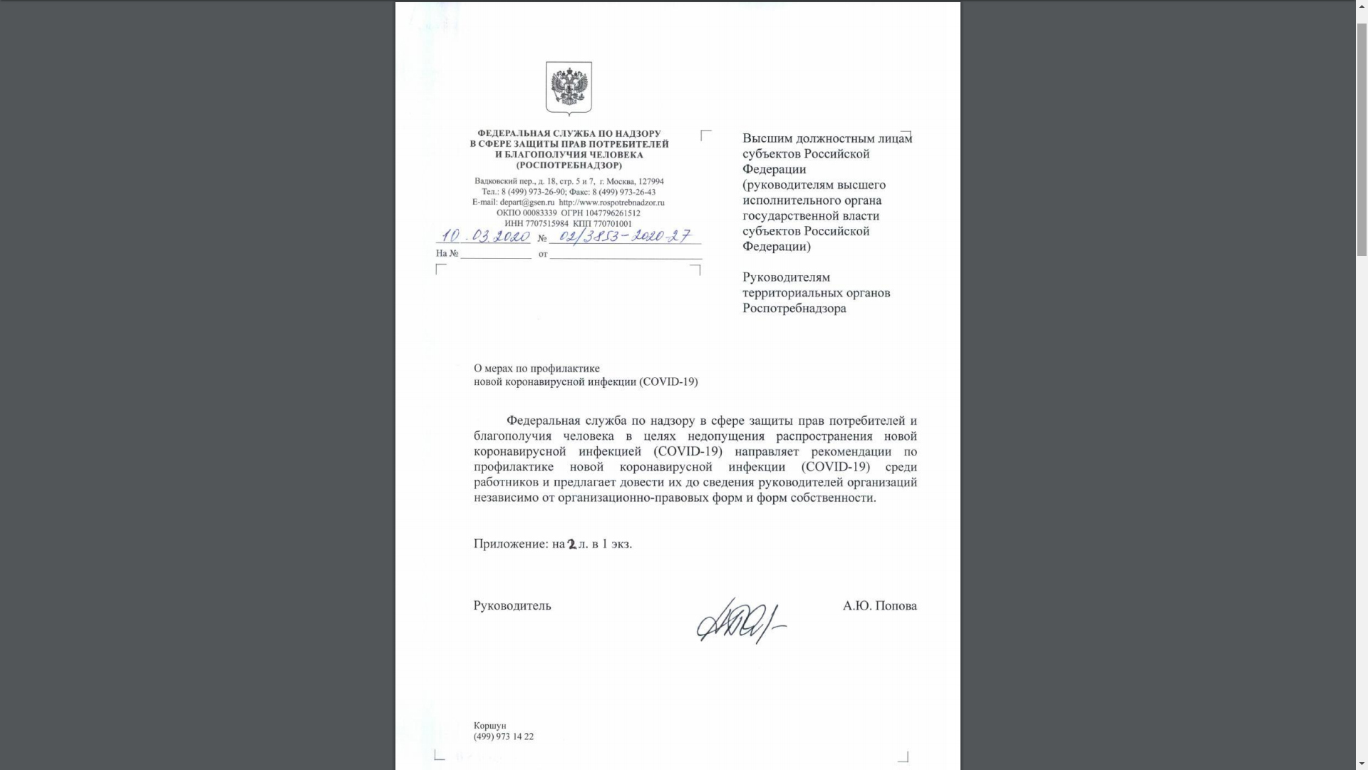 Ссылайтесь на Письмо Роспотребнадзора от 10.03.2020 "О мерах по профилактике новой коронавирусной инфекции.