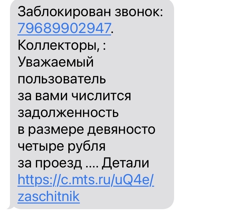 С недавних пор приходят звонки с требованием о погашении задолженности 94 рубля за проезд.