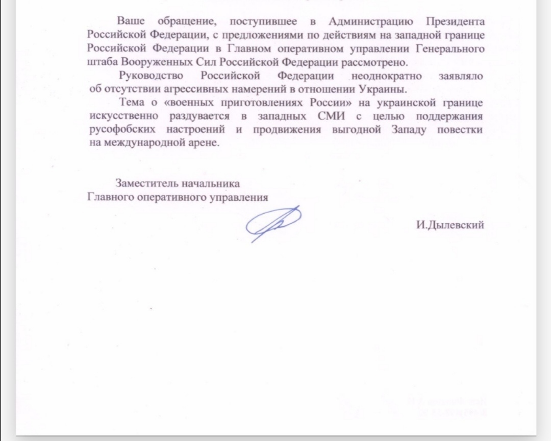20 февраля я лично писал письмо в мин обороны, просил не нападать на Украину. На что мне ответили что никакого нападения не планируется, это все западная пропаганда против России. Это я практически цитирую это письмо, если надо могу прислать пруф.