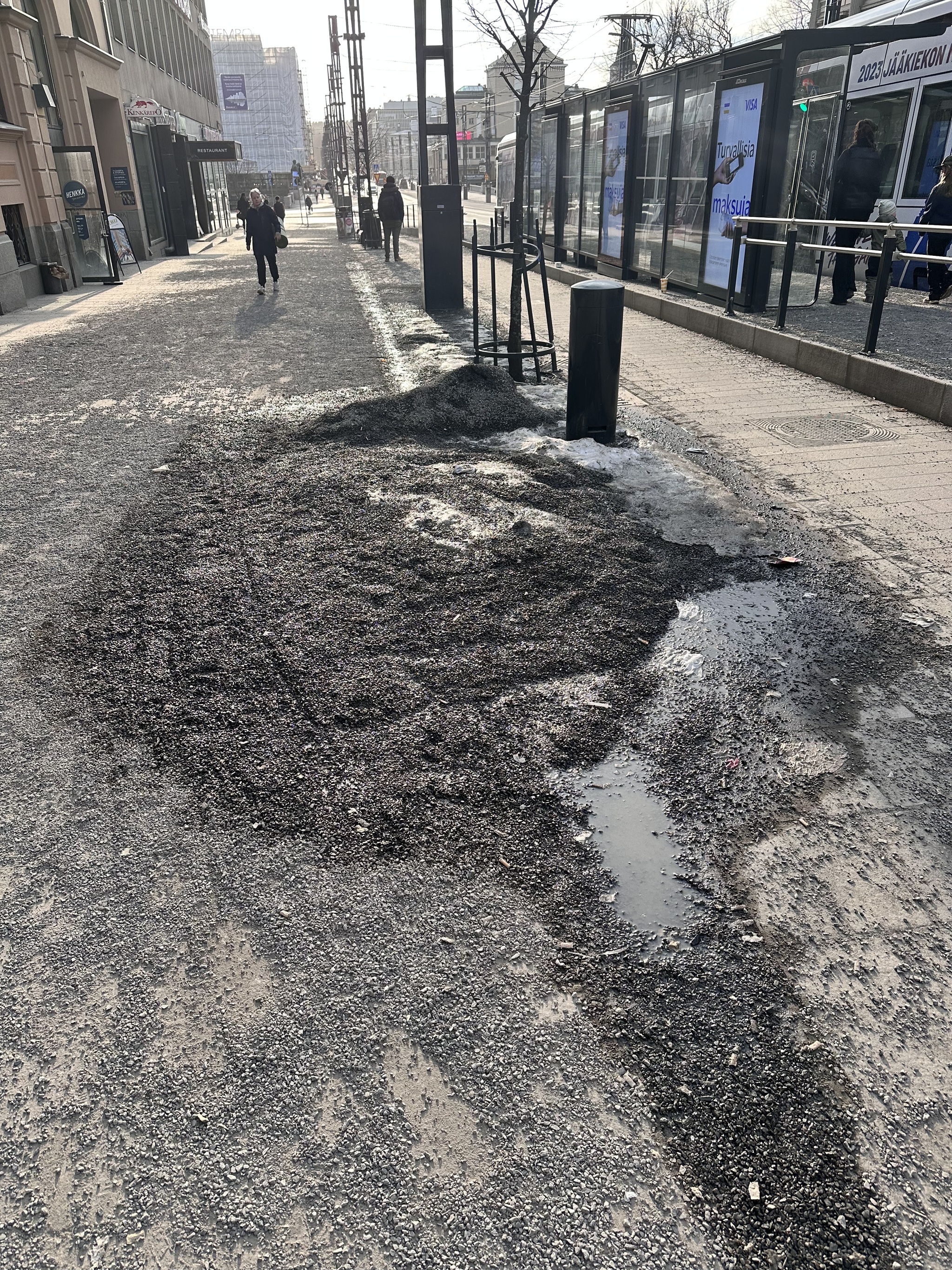 Был как-то в начале марта в Хельсинки. Не знаю, почему говноурбанисты так надрачивают на каменную крошку: она убивает обувь гораздо быстрее соли и в том же Хельсинки не убирается, пока все не просохнет. Там разве что центр столицы по весне более-менее чистится - а отойдешь на квартал в сторону и откроются все глубины жопы.