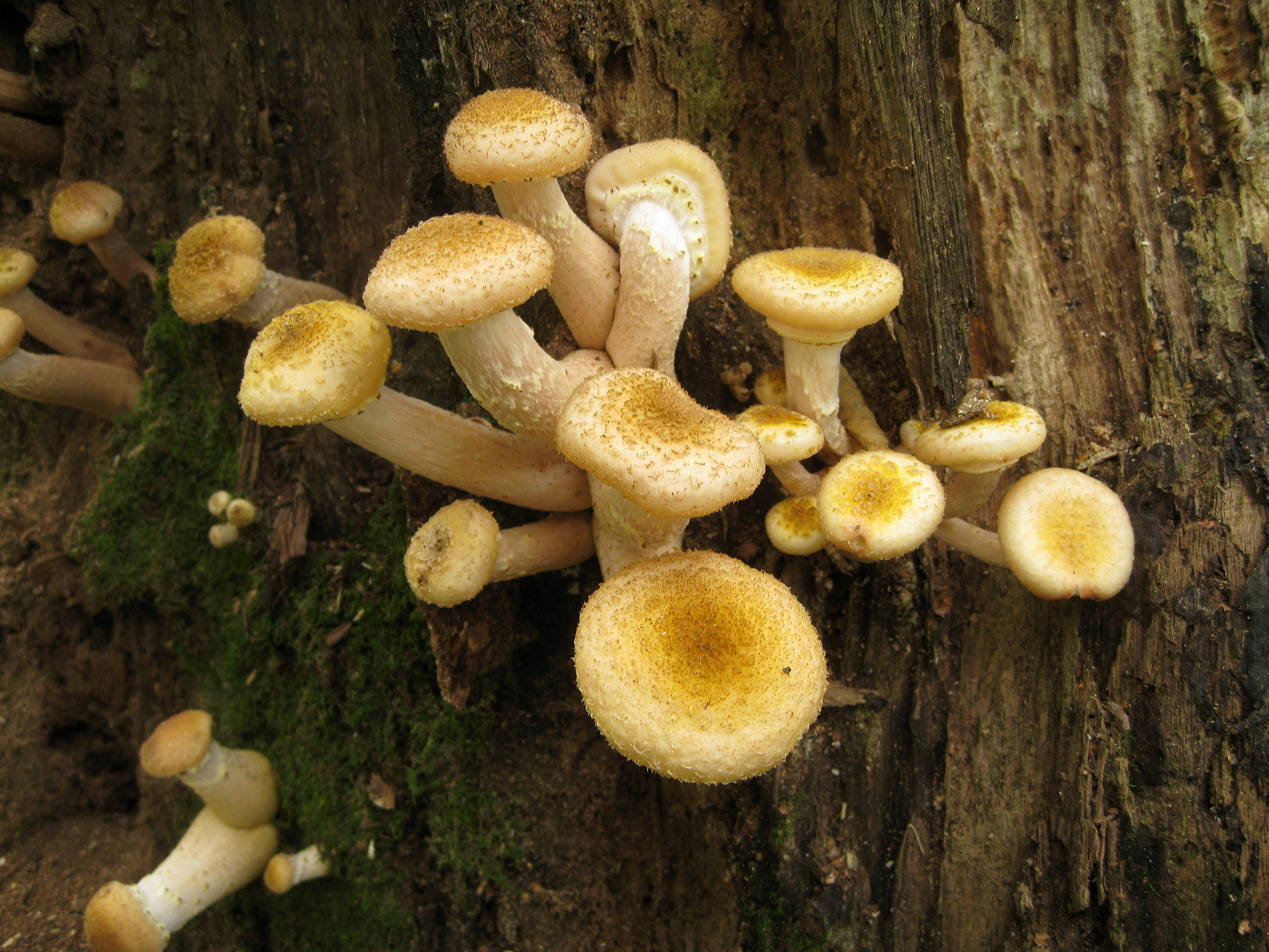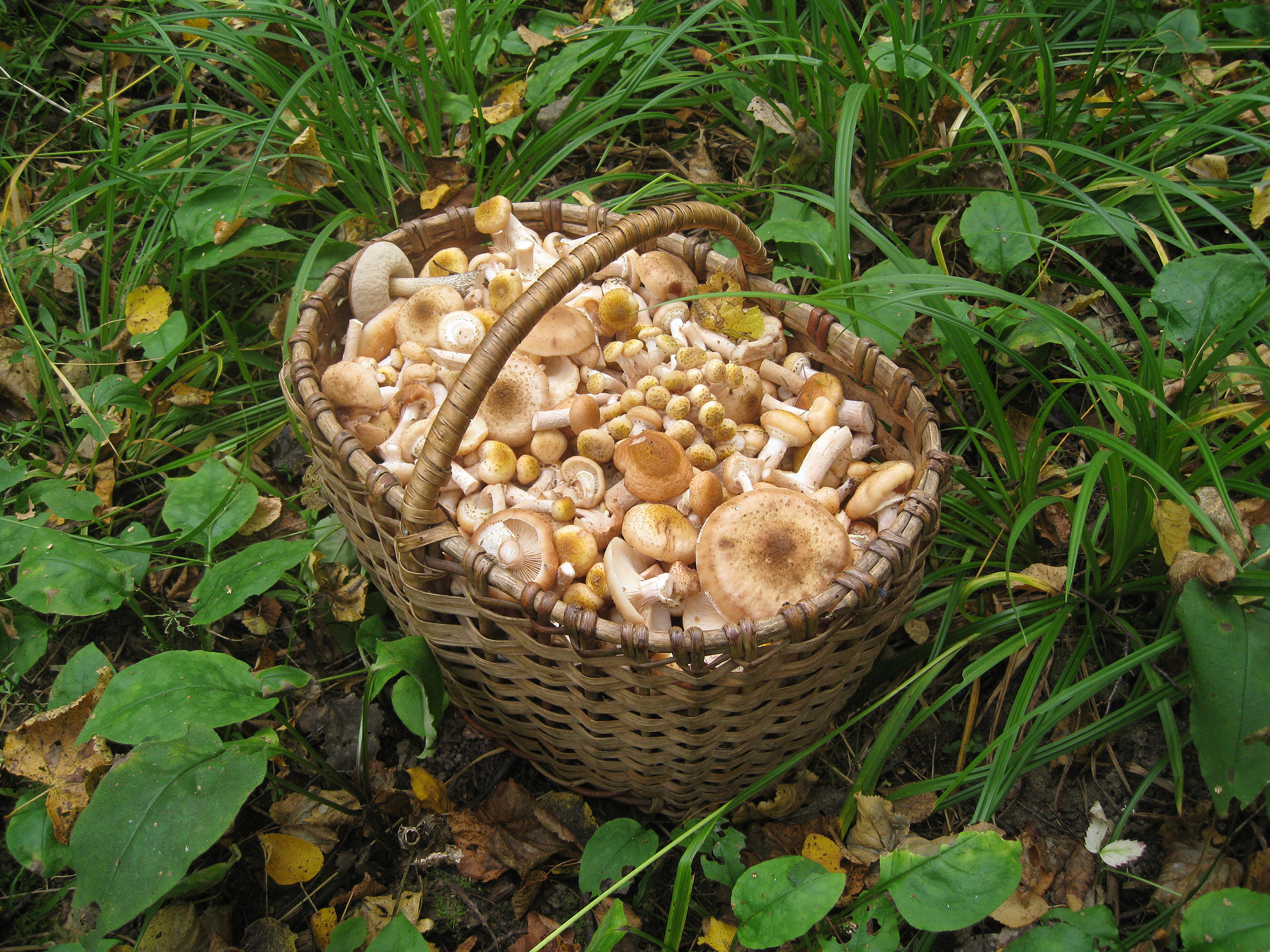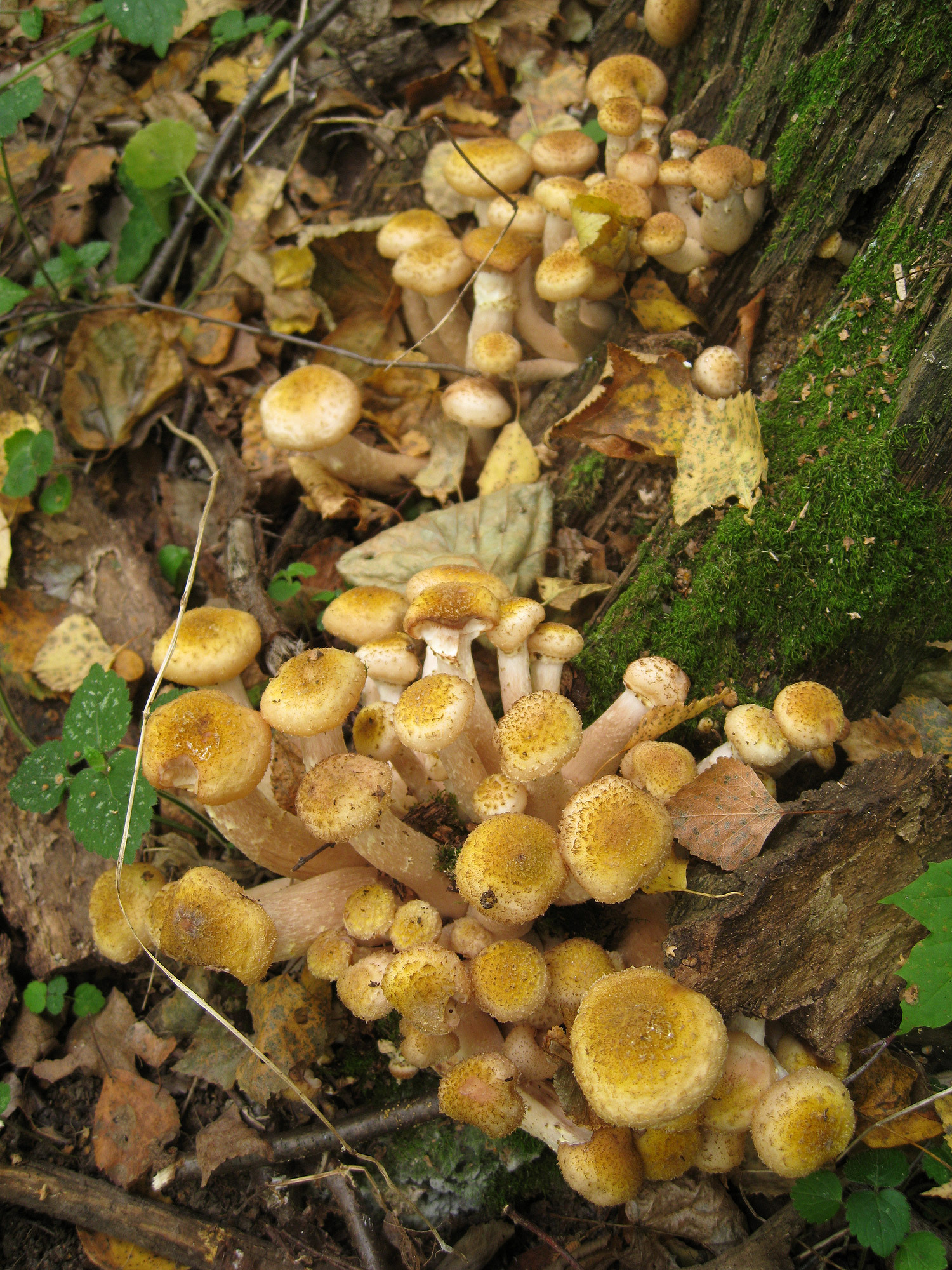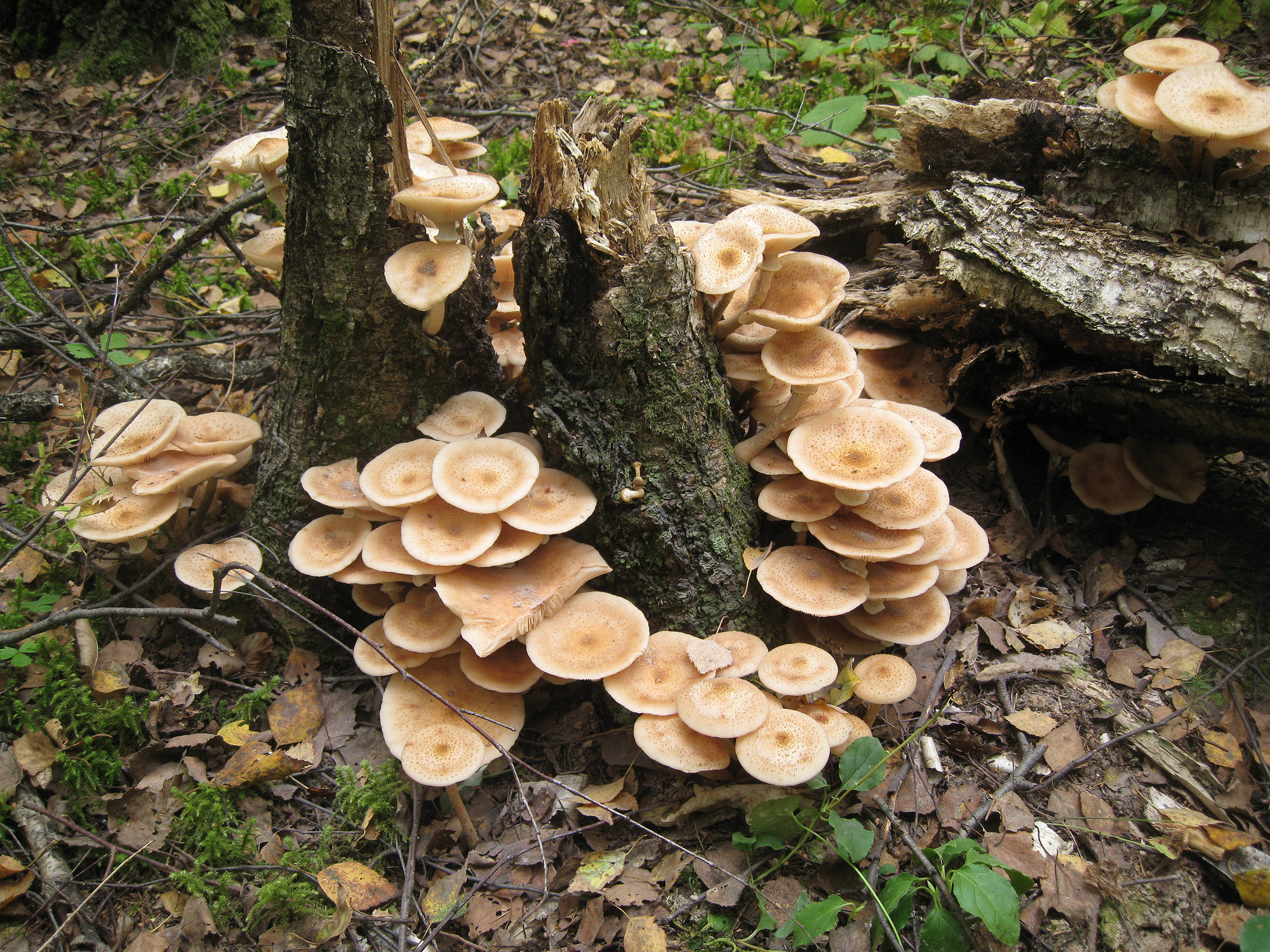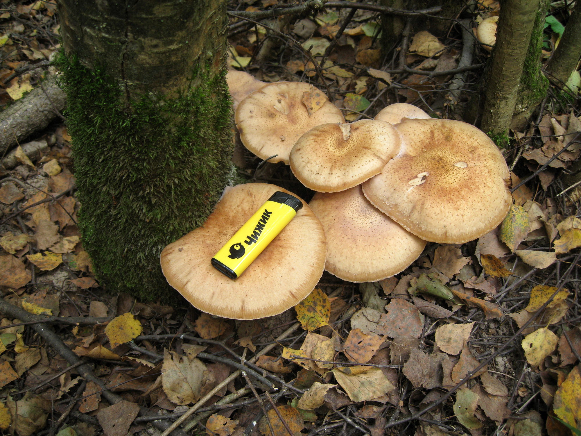 Наконец, ждать надоело, я решил подобраться поближе и выяснил, чем дерево так привлекает шершней. Оказывается, на другой его стороне торчали ноги от ранее срезанного куста опят, которые уже начали разлагаться до тёмной слизи. И в этой слизи, поедая её, радостно копошились шершни. Рассудив, что за несколько оставшихся опят я запросто могу поплатиться болезненными укусами, я покинул обедающих шершней и пошёл искать галлику в другом месте. К тому же корзина была уже почти полна, да и время подсказывало, что пора бы двигаться в обратном направлении.