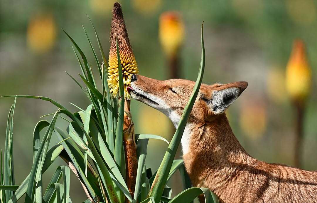 Не так давно ученые зафиксировали в горах Эфиопии, как эфиопские шакалы, уткнувшись мордами в цветы, лакомились нектаром.