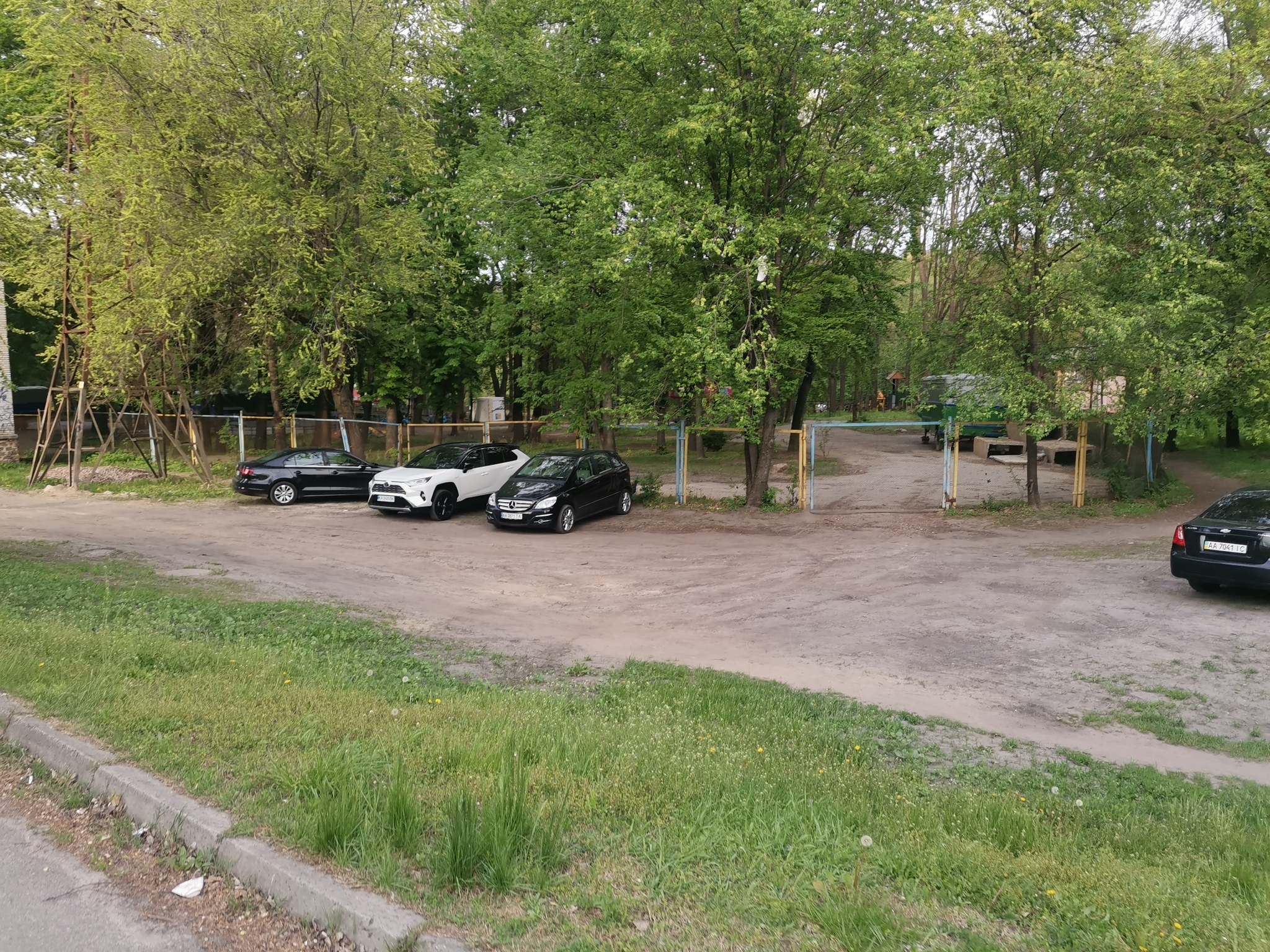 Столбики были вырваны неизвестными, а так как там виделись следы шин и полянка была уже укатаной, то там начали машины паковать и заезжать в парк через зелёную зону. Более того, грузовики, обслуживающие соседние аттракционы, стали там заезжать к себе на территорию (для них даже вырезали место в заборе).