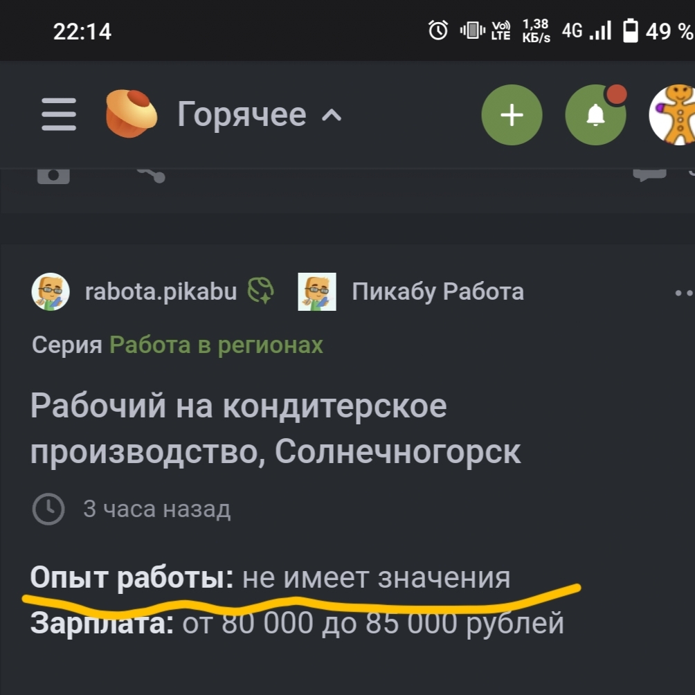 5 Oladushkin Опыт работы 10 месяцев назад Юмор Кулинария Кондитер Длиннопост Вакансии Посты на Пикабу Скриншот Ещё 0