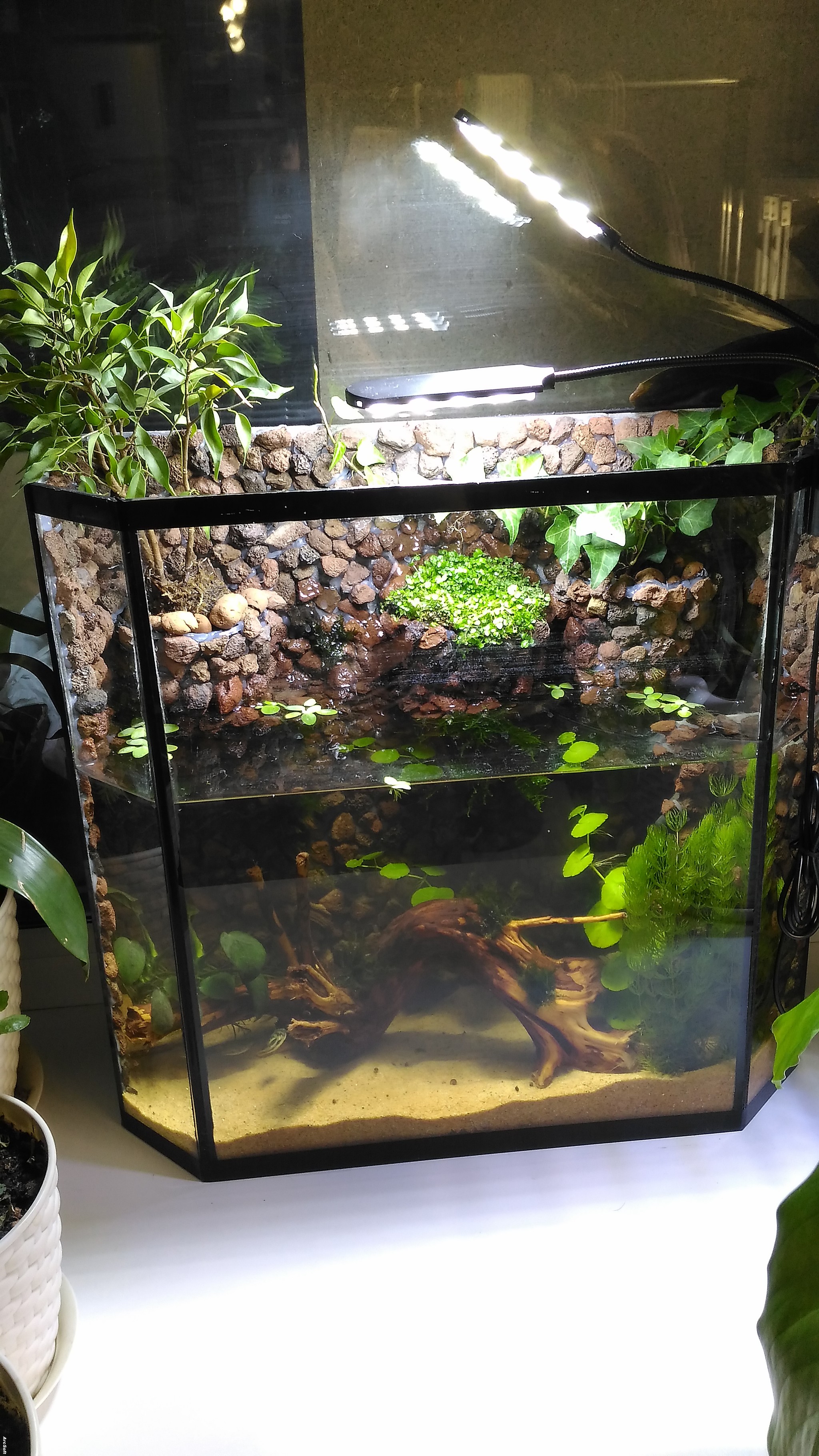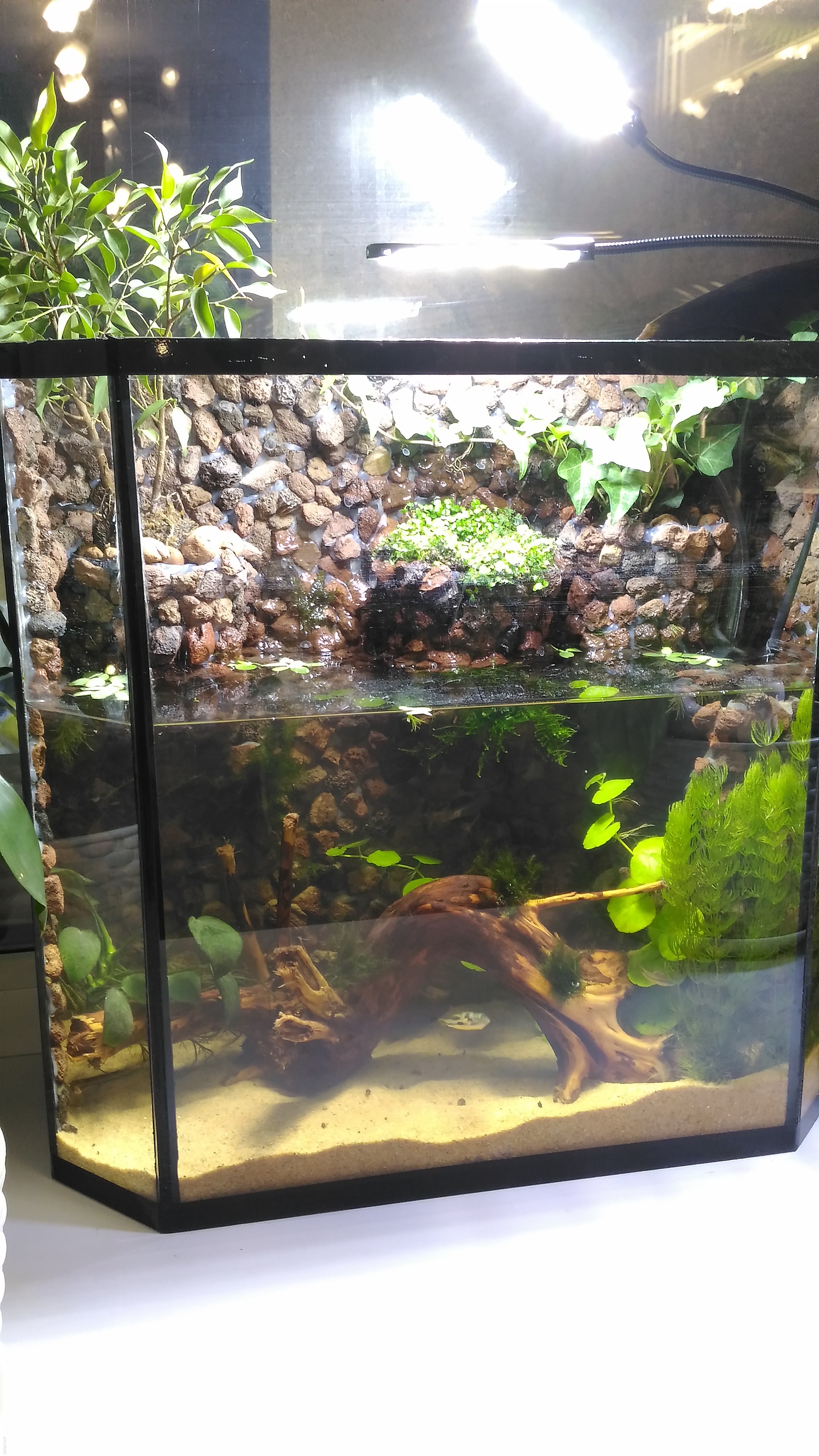 Но в одно утро когда включила свет в аквариуме, увидела, что у всех остальных рыбок покусаны плавники. Тетрадонов пришлось отсадить, хотя предыдущие двое такого никогда не делали. За неделю соорудила им новый дом на 20л, теперь они, надеюсь, счастливо живут втроем.