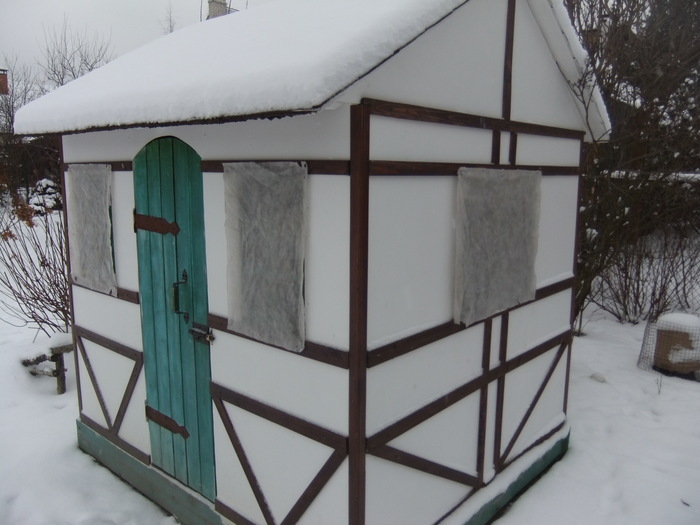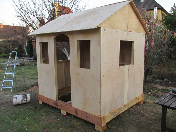 Всем фото , которые выше, уже два с половиной года. Я тогда поделился своими успехами с народом в инете. Многие знатоки прочили домику короткую жизнь т.к фанера - это отстой и ваще....