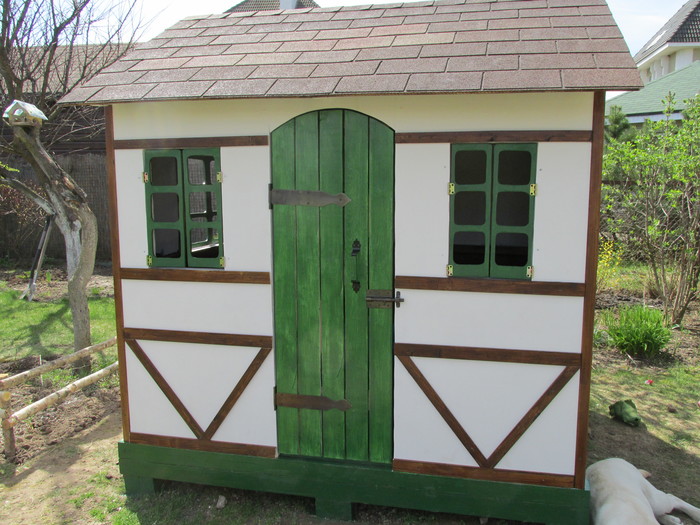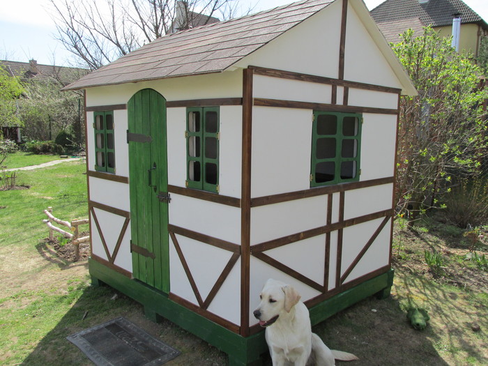 Вот фото сделанное вчера. Домик стоит и прекрасно себя чувствует. Только в сентябре снял декор и покрасил. Но не потому, что там что-то начало портиться. Он просто испачкался от игр детей и собак.