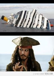 Кароче было так: капитан видит, что им не избежать столкновения с мостом, ну и говорит об этом всей команде. Та со страху начинает ложить кирпичи и корабль идет на дно. Потом они замечают что они не погибли, и вроде все норм, кроме воды за окнами. Все начинают быстро выкидывать кирпичи и вуаля! Корабль всплыл. The End.