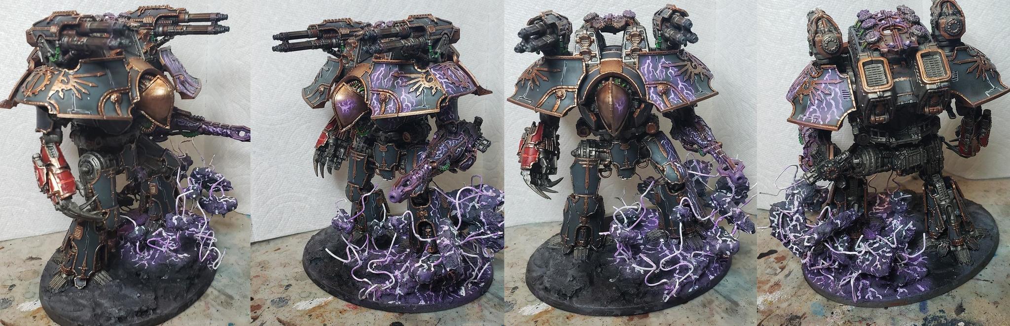 Один эльдарский Титан-Чернокнижник полностью уничтожил Легион Титанов Легион Фуриас, высадившийся со второй волной. Другого такого Титана удалось сразить Сангвинию, но было очевидно, что имперцев вскоре истребят. В этот момент на Искусственный мир высадились машины Ордо Синистер. Они атаковали эльдар ракетами и турболазерами, правая рука каждого Титана была снабжена убийственными Когтями Ариоха (по сути, силовые когти, но для Титана). Такая конфигурация была типичной для всех Титанов класса «Владыка Войны», но на левой руке каждой Богомашины находилось странное орудие, которое вскоре начало извергать из себя потоки черного не-света.