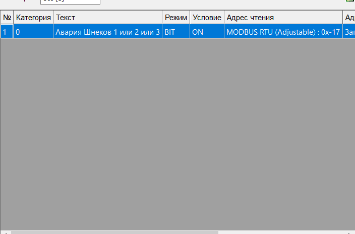 В этом окне создаем список переменных, на которых будут завязаны аварийные события. Можно биты или целочисленные значения.