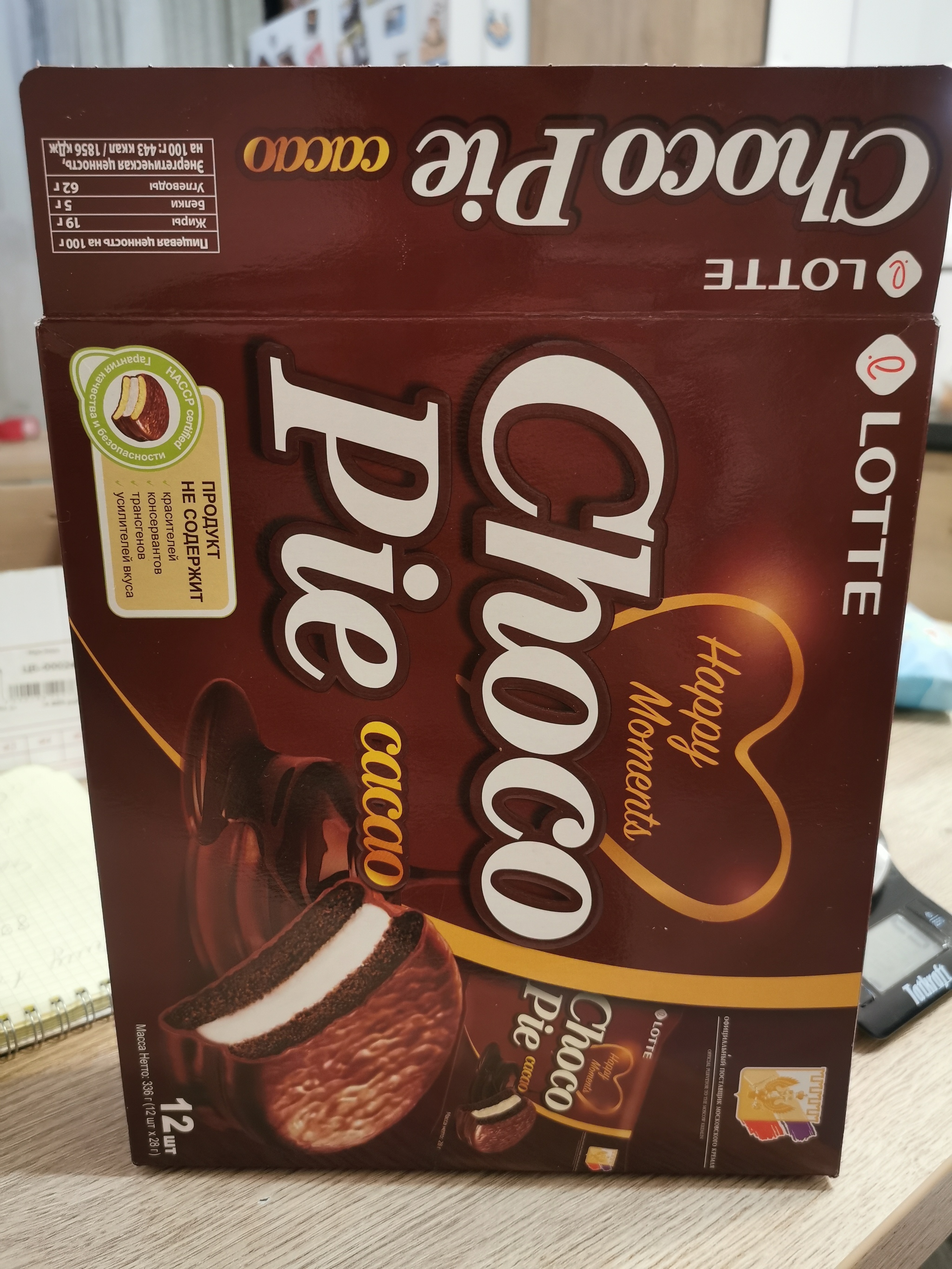 Частенько покупаю на работу к чаю упаковку Чокопай от Orion (Dark нравится). А на днях был в Ленте и купил по акции коробку Чокопай Какао от Lotte. Сегодня на работе открываю одну, затем вторую. И понимаю, что-то с ними не так.