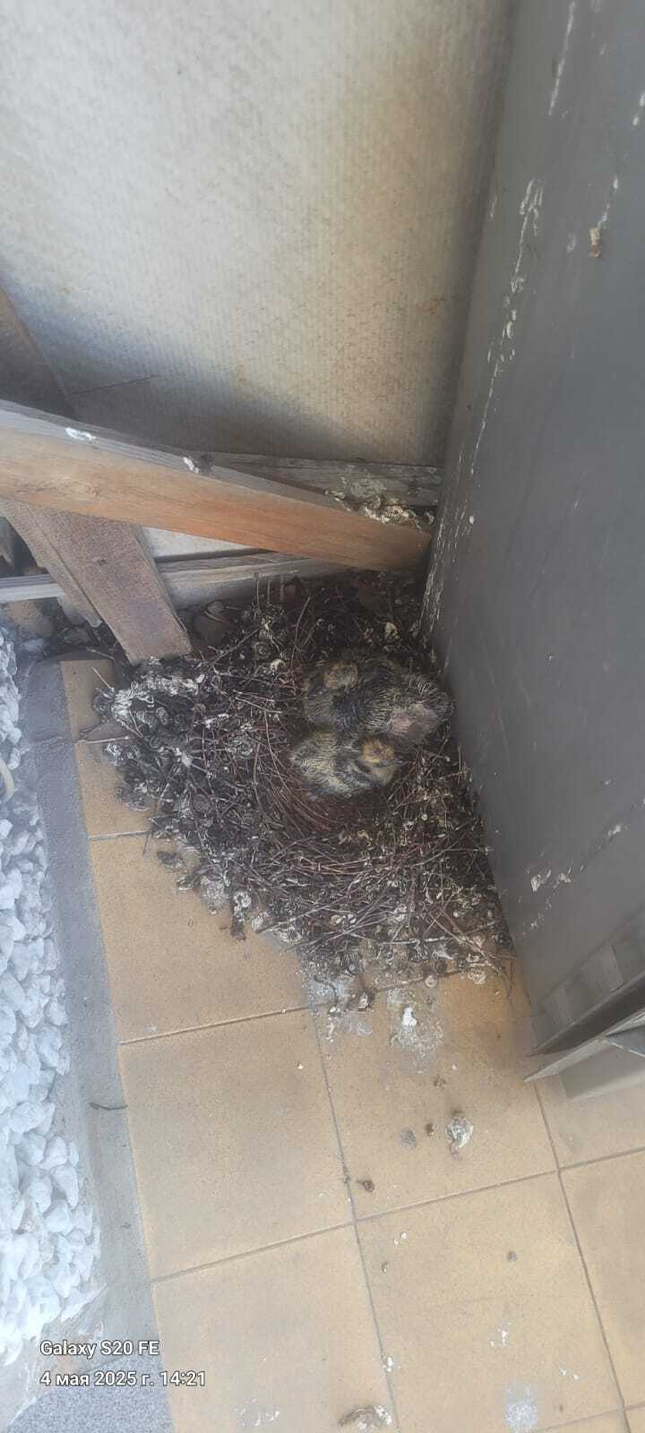 В общем, решили их с птенцами не выгонять: вырастут - выставим. Тихонечко набоюдаем за ними пока и ждëм (ужаса отмывания балкона). Но тут нарисовалась проблема: один птенец плохо растëт и мало шевелится. Второй уже бодро бегает по всему балкону, отгоняет нас от мелкого, и пытается уже летать.