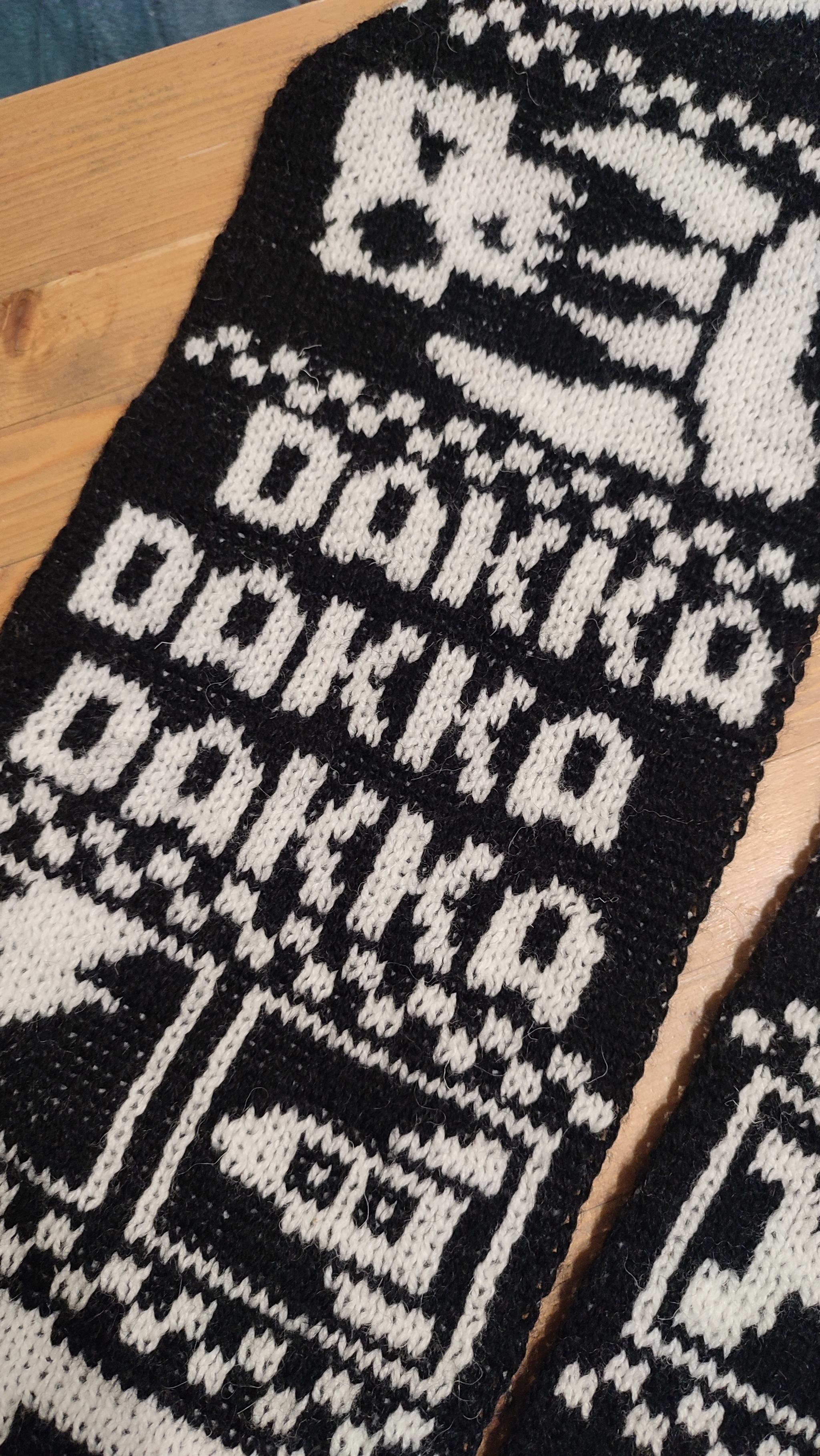 Доброго предновогоднего утра пикабушники! Приложив усилия, я все таки смог закончить очередной шарф, в этот раз в тематике орков из вселенной Warhammer 40000, который будет подарен в качестве подарка бывшему коллеге.