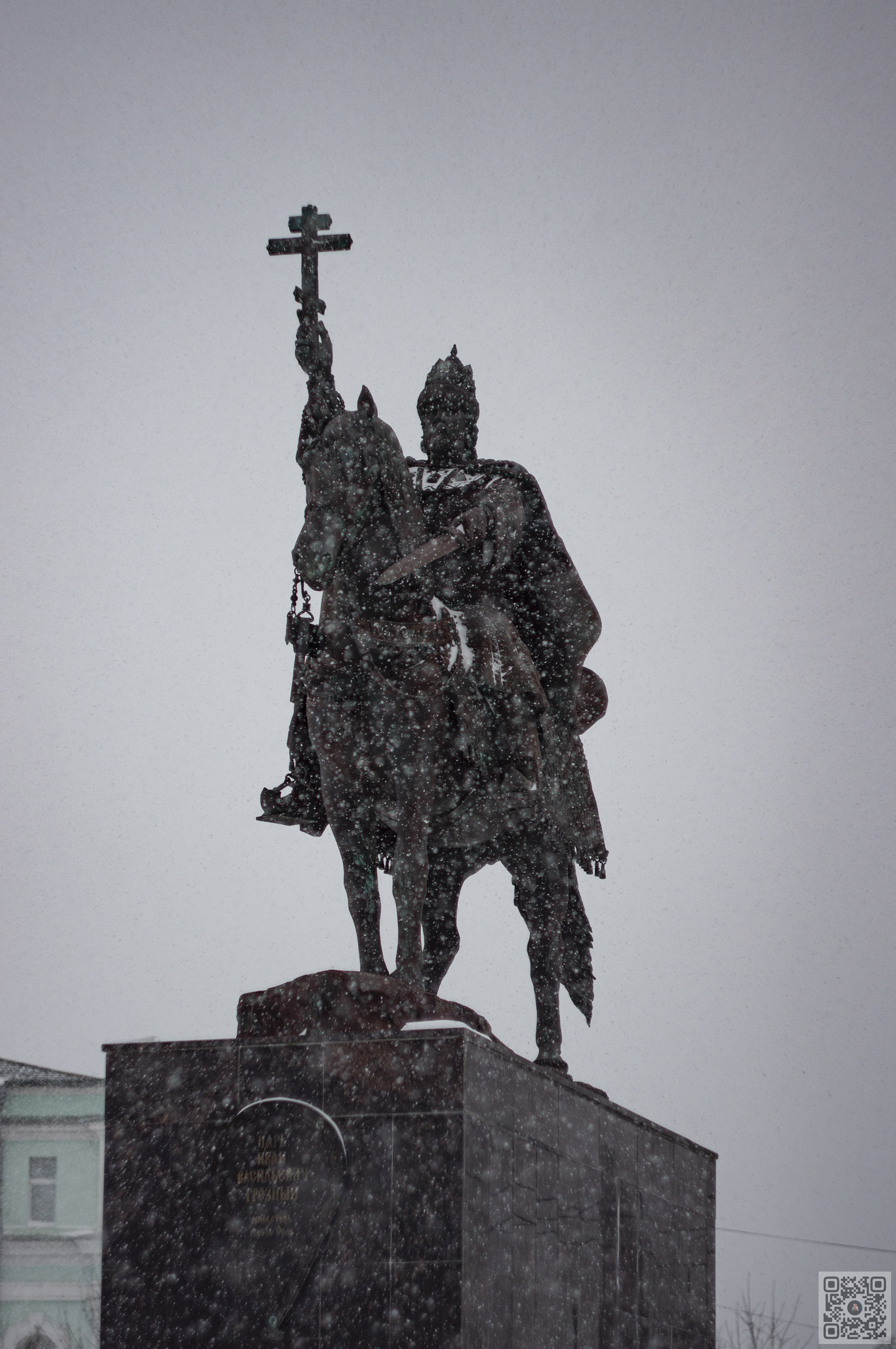 Тут мы и можем попытаться рассмотреть сквозь снег скандальный памятник Ивану Грозному.
