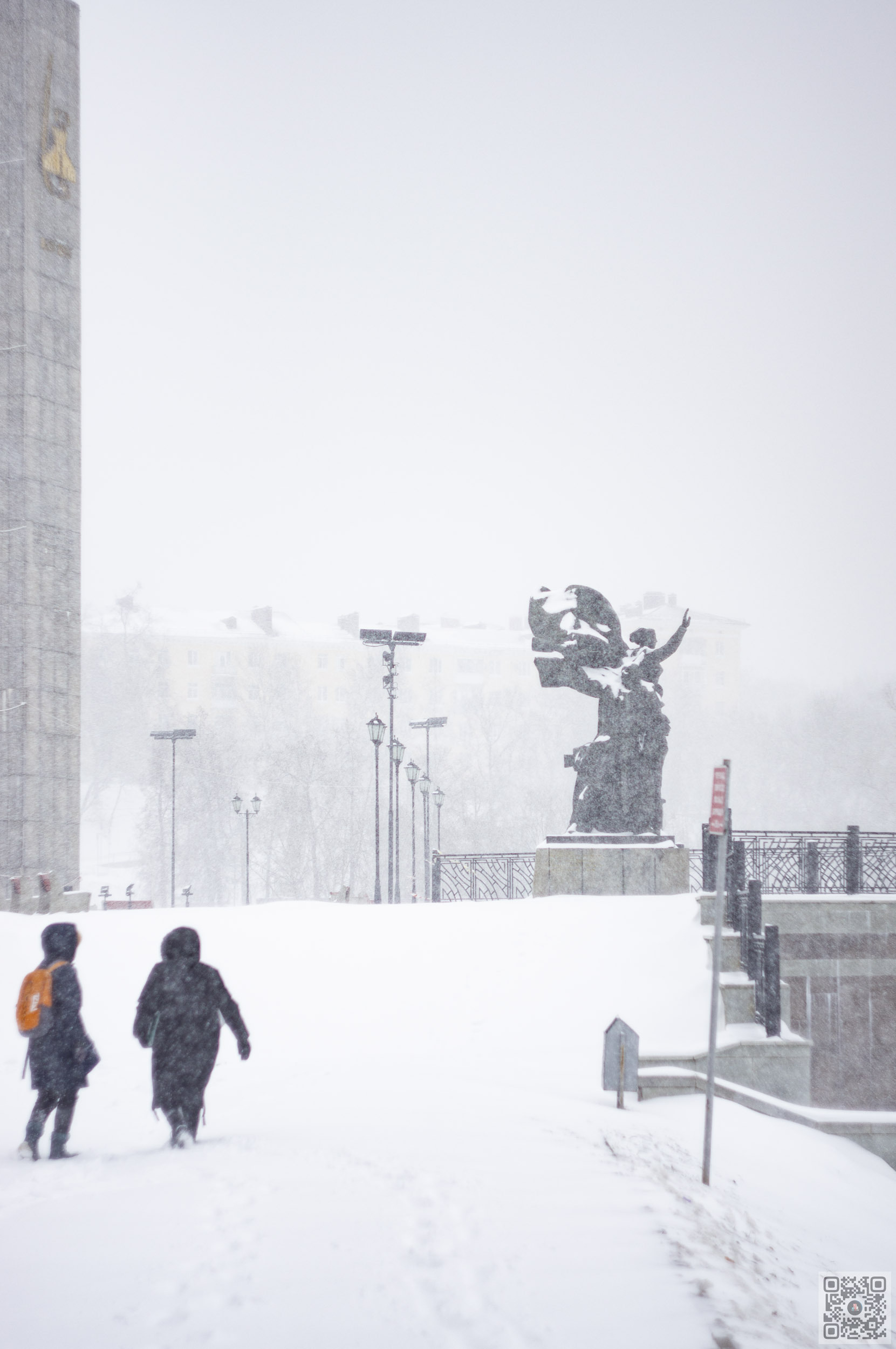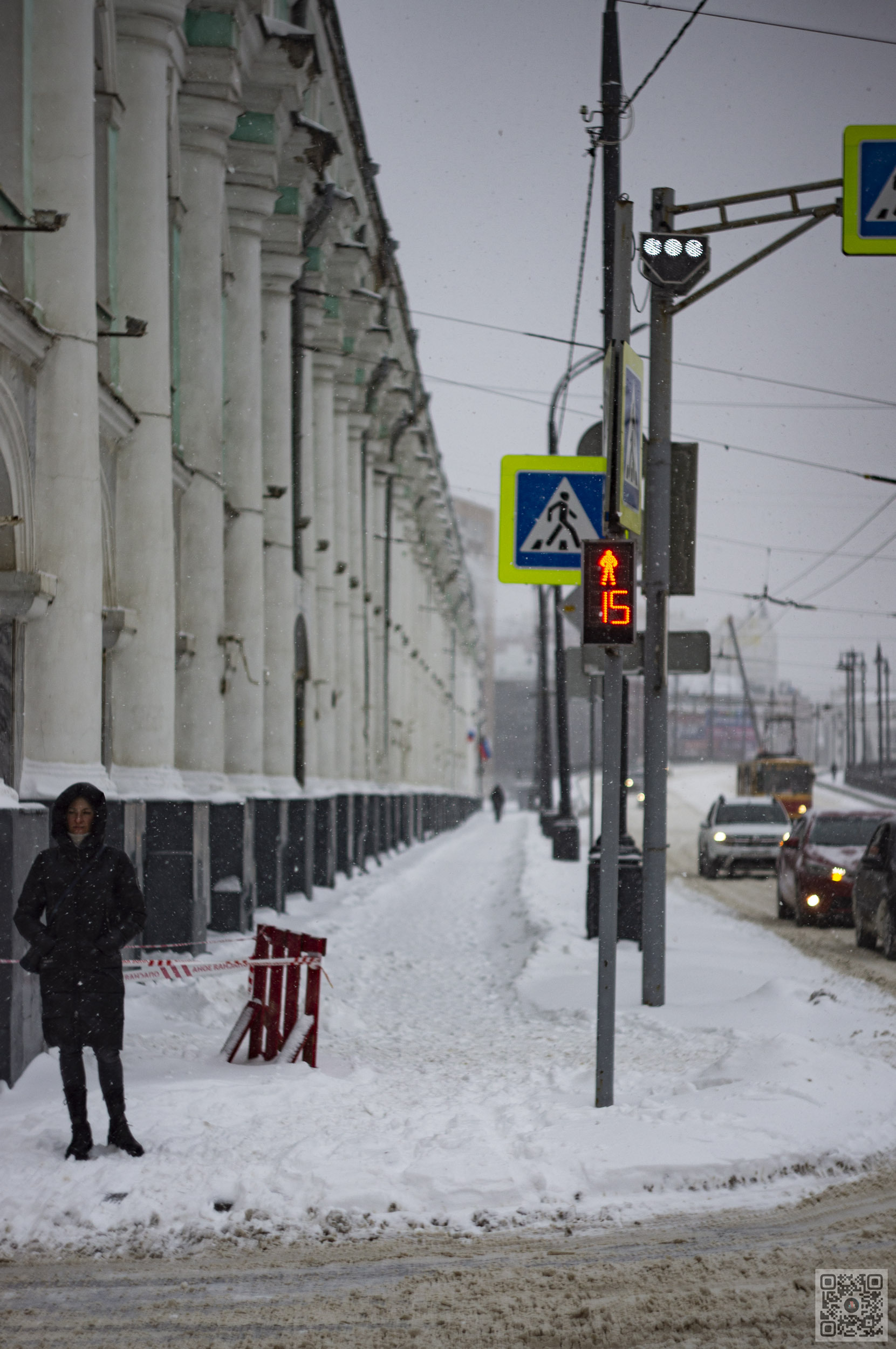 Всё же как снег меняет окружение. Ещё пару дней назад мы ходили по этим улицам, разгоняя лужи и надеясь не промокнуть хотя бы выше пояса, а теперь всё белым-бело.