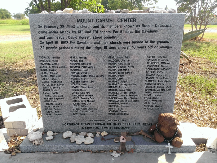 В 1935 году давидианцы переехали в Техас и обосновались на возвышенности неподалёку от города Уэйко. Возвышенность они назвали «Маунт Кармел», по аналогии с израильской горой Кармель, упомянутой в Ветхом Завете.