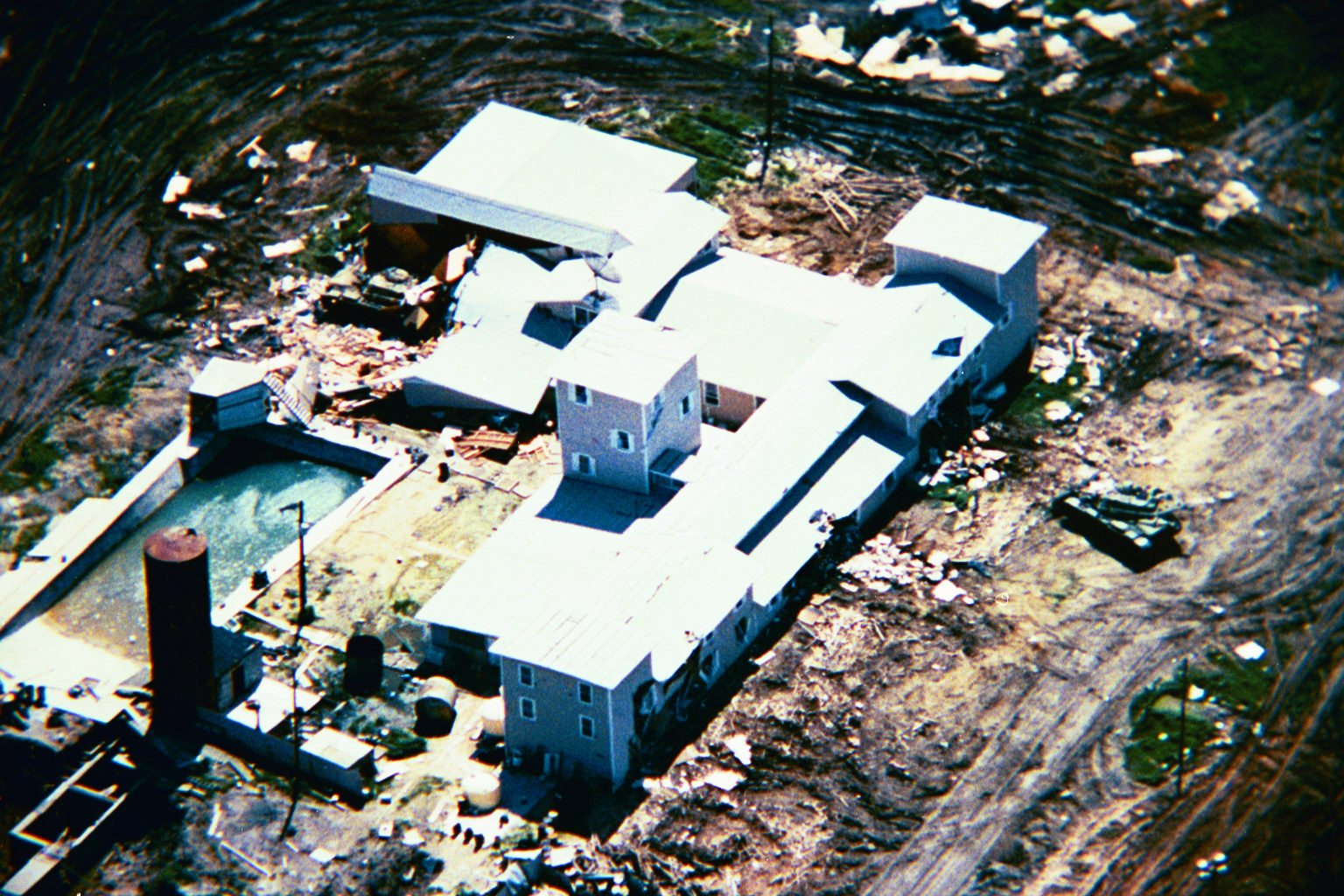 Танк М60 рядом с поместьем. Видны проломы в стенах
