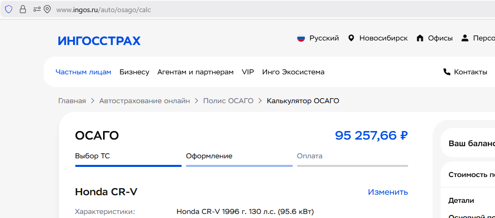Что-то ты скрываешь. Я взял свою старую китайскую повозку образца 2007 года. И посчитал. С учетом безаварийности (мой КБМ 0.46) у меня получилось чуть больше 15 тысяч в ваших краях.