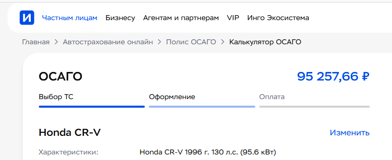 Тебя пять раз уже спросили русским по-белому: какая машина, год, пробег, стаж, сколько ДТП? Нет на "старую ЦРВ" такого ценника, даже с коэффом 3.