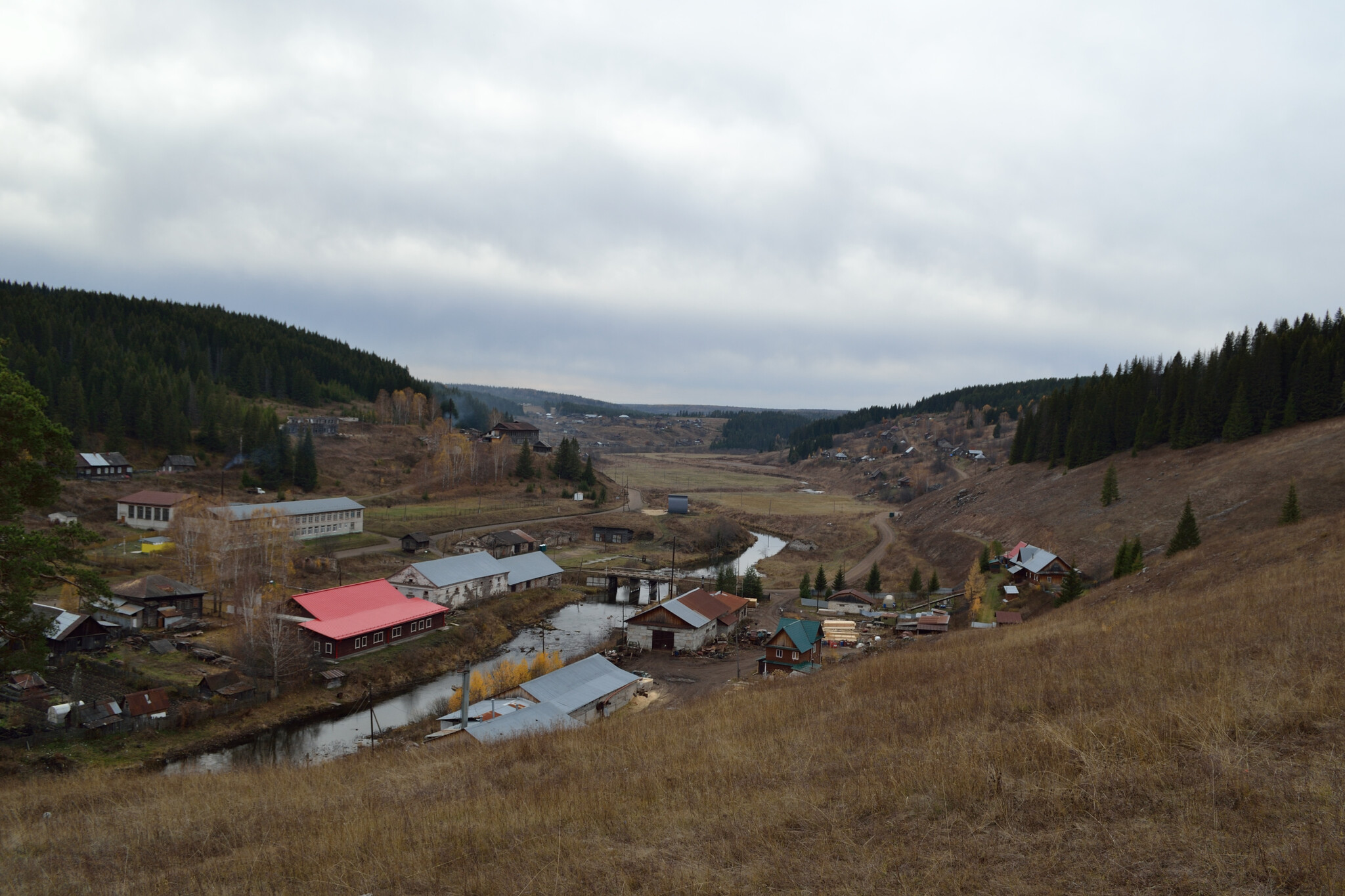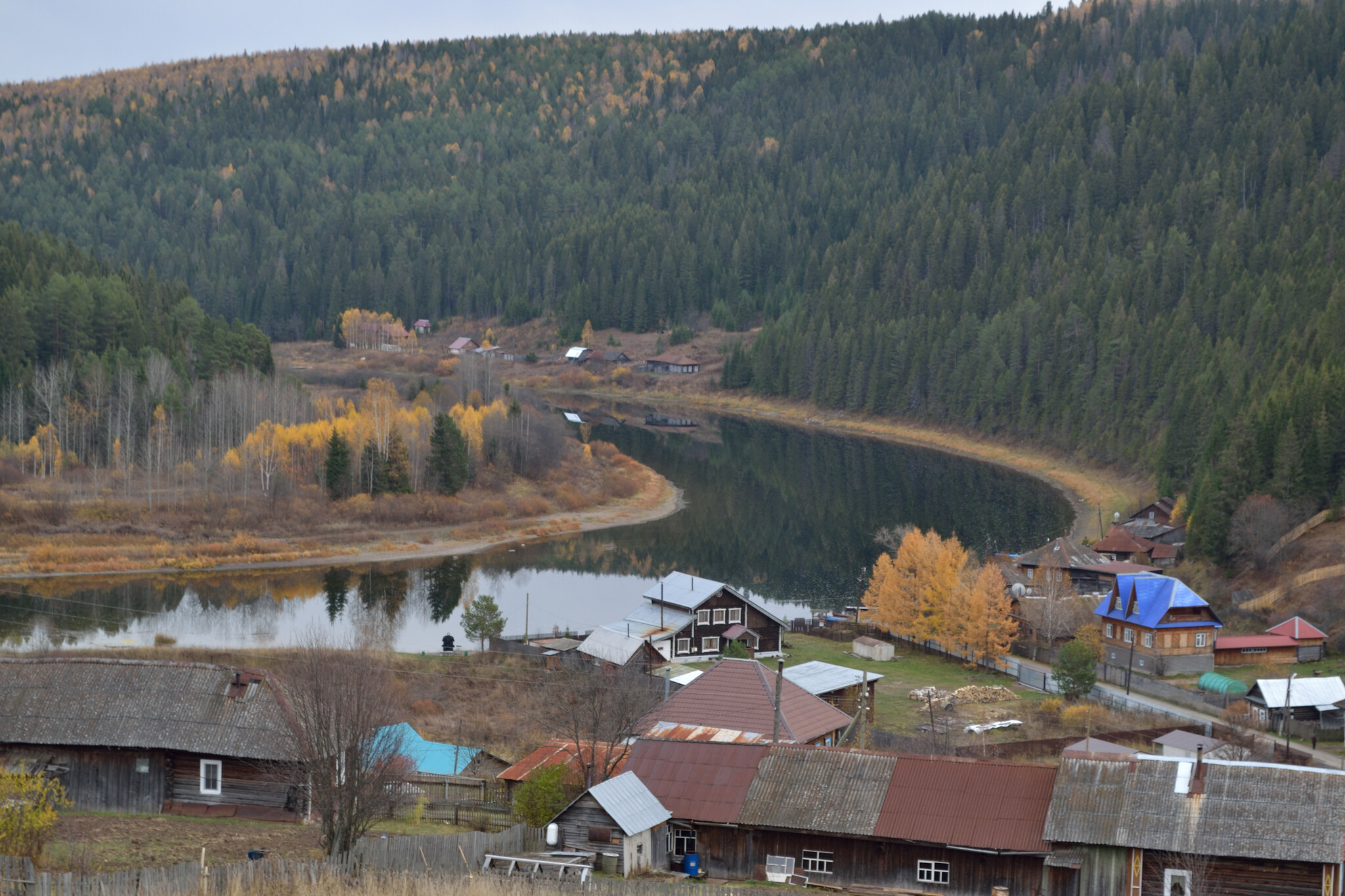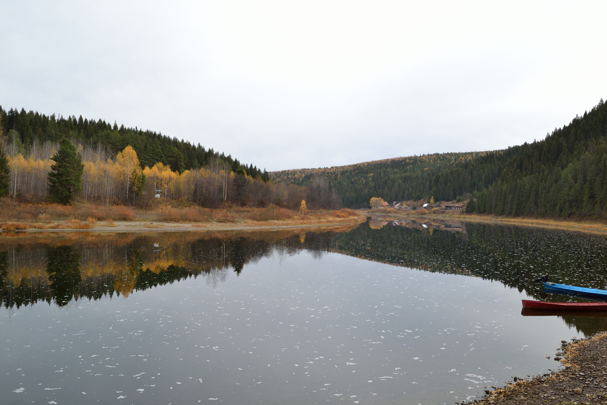 Кын - это небольшое село в Пермском крае, отлично известное всем туристам-водникам, когда-либо бывавшим в этих местах. До ближайшего города, Лысьвы - 92 км, большинство из которых - грунтовка, вполне пригодная для проезда на легковой машине (если не считать бетонные плиты в два ряда на подъезде к ж/д станции, по которым едешь, как по рельсам). Даже после сравнительно небольшого и спокойного городка , в котором мы живём, это место поражает своей тишиной. Вокруг - скалы, лес и изгибающаяся подковой Чусовая. На её берегу мы нашли старинную пристань 18 века, с которой когда-то грузили барки с железом, а неподалеку - церковь, которую построили еще при графе Строганове. Сохранились и постройки старинного железоделательного завода. У поселка длинная и интересная история, отраженная и в книгах и в документалках, так что думаю, здесь её не пересказать, да и ни к чему - при желании можно заглянуть, например, на портал "Наш Урал". А этот пост - просто уральская осень нашими глазами.