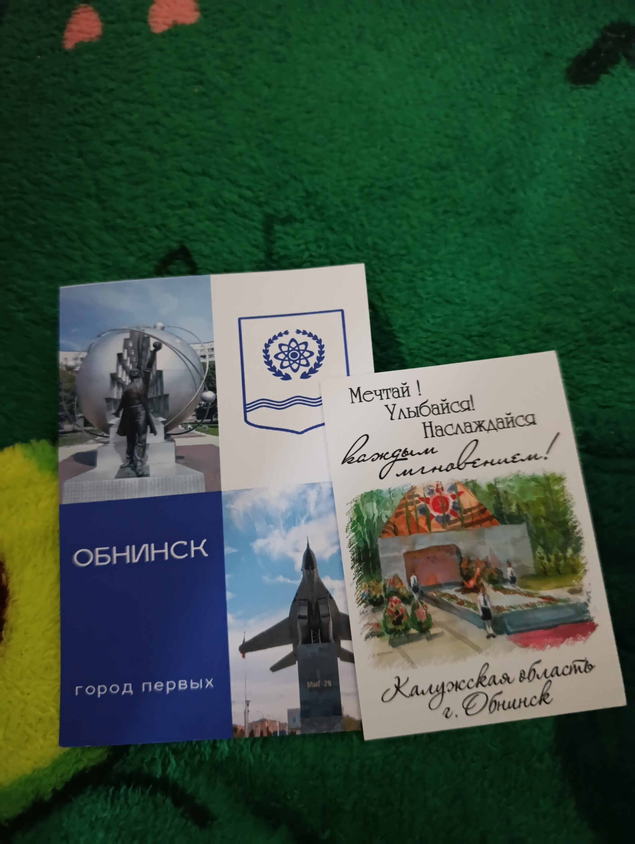 При открытии посылки сверху лежал конверт в котором была открытка и календарь с городом отправителя