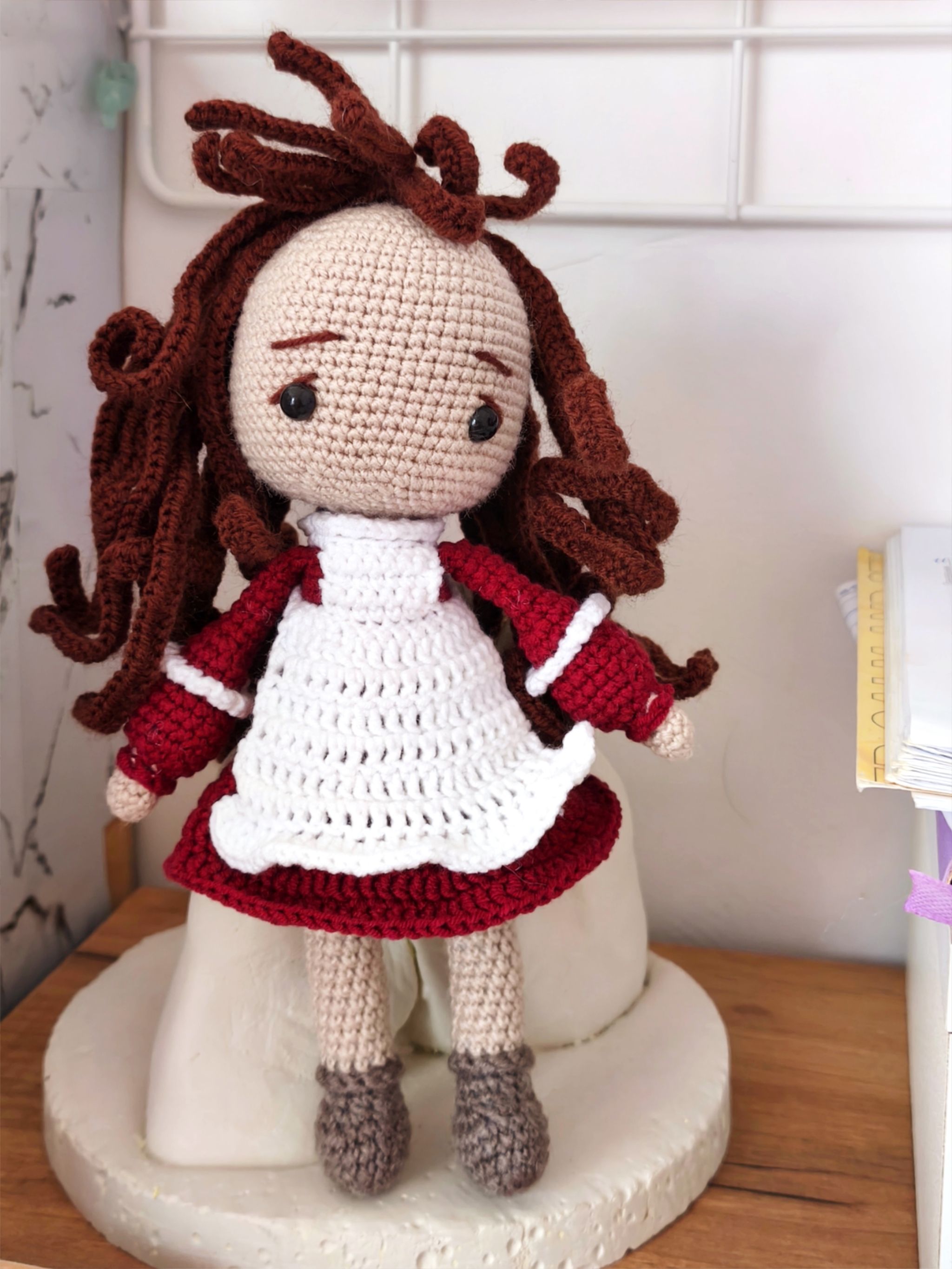 Потихоньку начинаю вязать осеннюю серию. Уже почти готова девочка, осталось совсем немного довести ее до ума: оформить прическу, связать аксессуары и девчушка готова дарить тепло и уют этой осенью 🍁🥮
