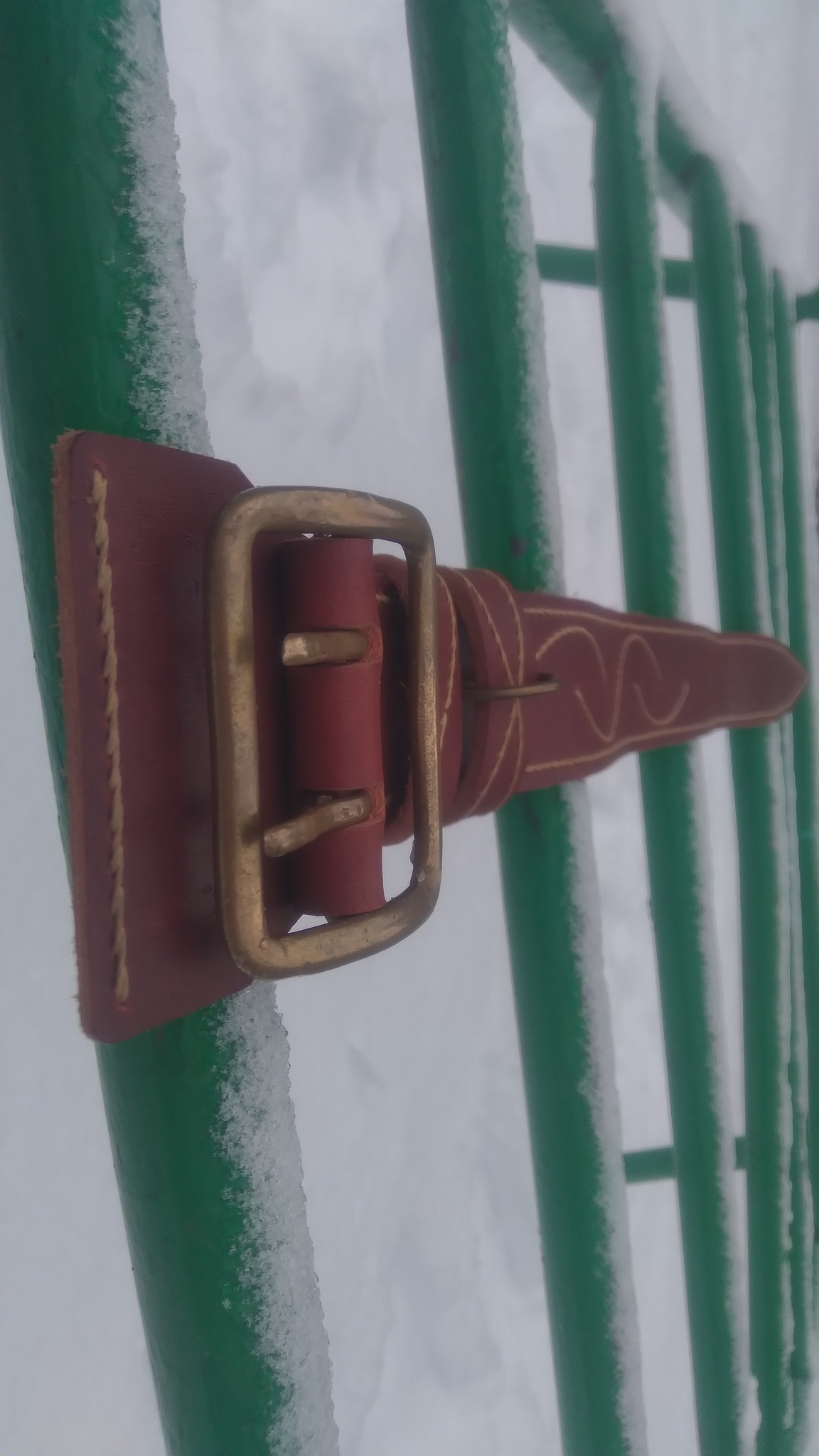 Есть у меня пара пряжек времен СССР от армейский ремней. Показал их товарищу и на этом порешали.
