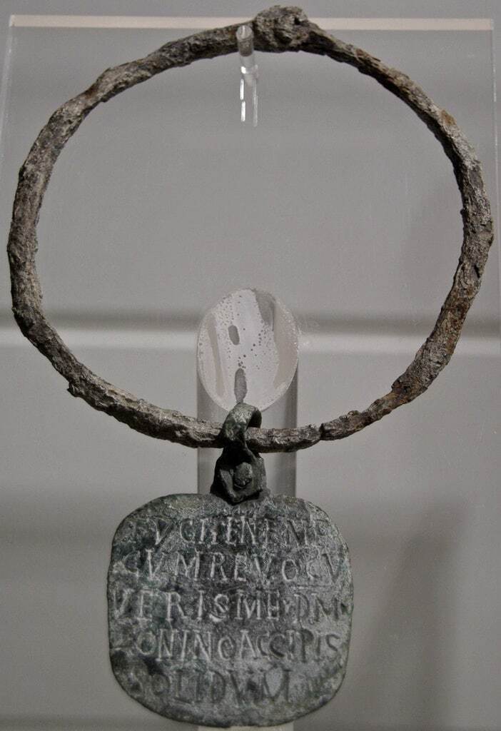 Ошейник древнеримского раба с надписью: