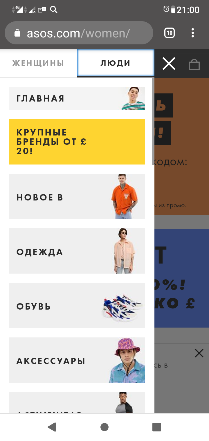 Только что зашёл на площадку ASOS. Гугл предложил русский или английский перевод. Выбрал русский. И не могу найти мужской раздел. А оказалось вот что.