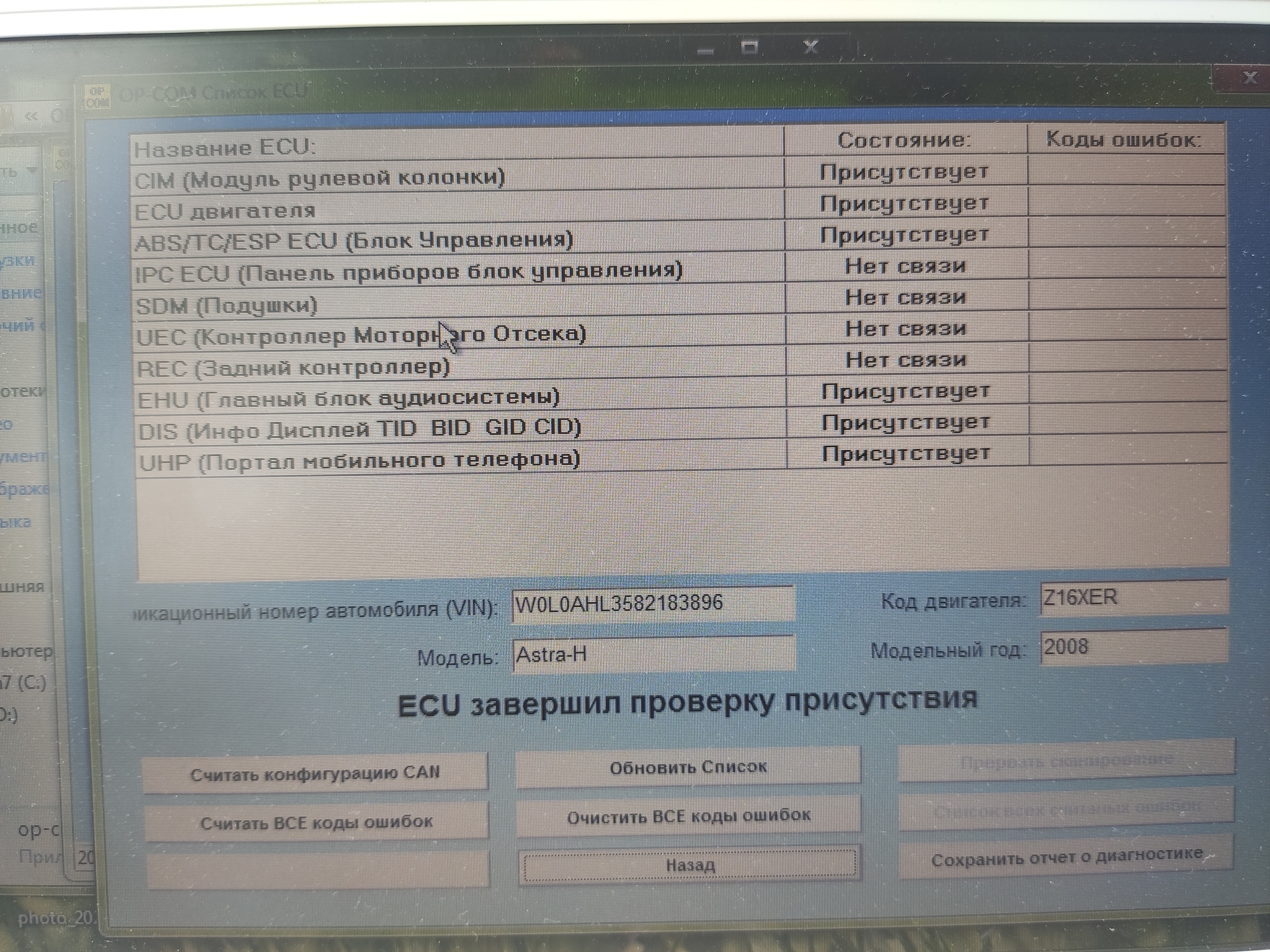 Приветствую, дёрнуло меня купить OP-COM для своего жопеля, и там насыпало "немного" ошибок. Прошу прощения за "скриншот".
