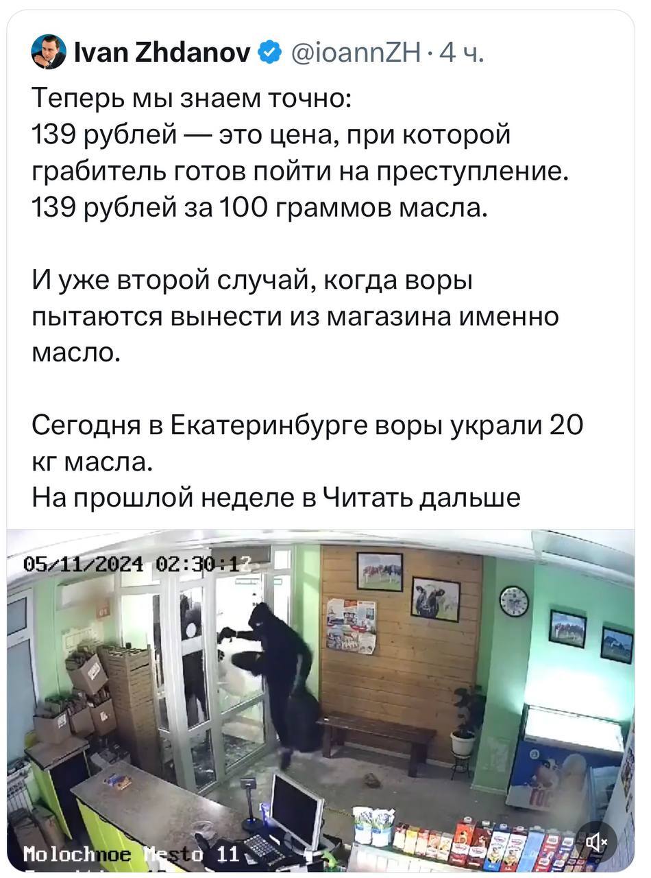 205 VinceLopez Ошуительные истории от Ивана Жданова 1 год назад Как же они любят вцепиться в тему с каким-нибудь подорожанием и разгонять по ней дерьмо. До этого было с яйцами, теперь вот с маслом. Политика X (Twitter) Сливочное масло Масло Жданов Либералы Скриншот Кража 19 3 1 Ещё 0