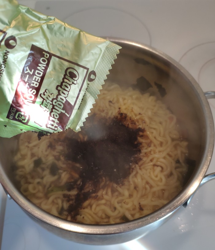 Короче говоря, делаю как в кино. Chapaguri (более популярное название блюда) это смесь двух довольно дешёвых дошиков от Nongshim Chapaghetti (57 рублей) и Neoguri (21 рубль).