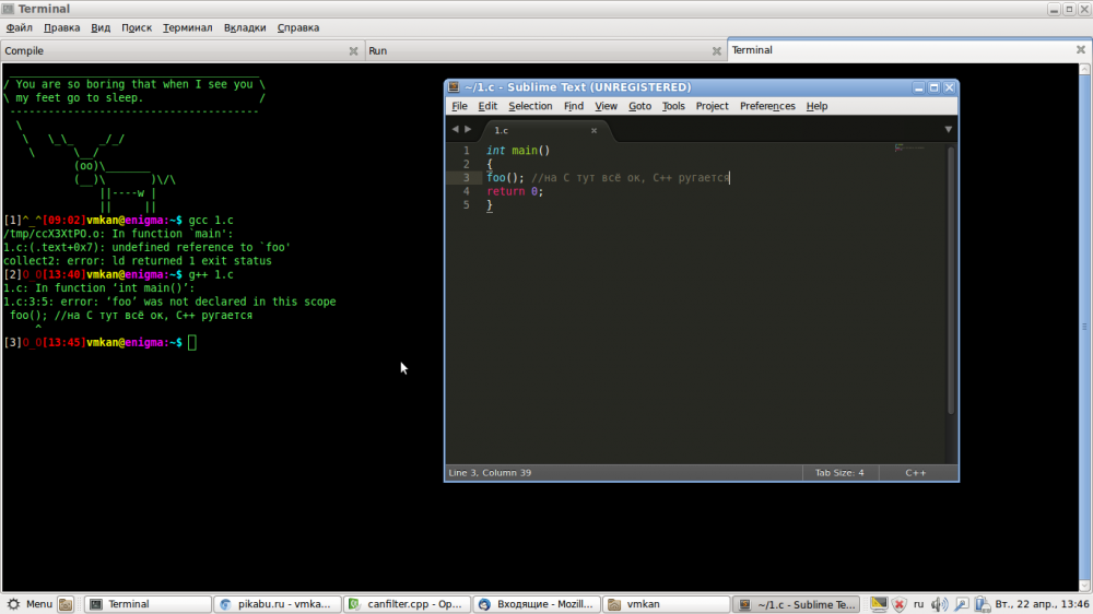 Самый тупой подход к обучению - учить, не объясняя, почему и для сего делается то или иное. Скажем, я никогда не программировал - какой, бл@, компилятор? О чём вы вообще? Библиотеку подключить? Какую библиотеку? Зачем они? А у меня компьютер виндовс
