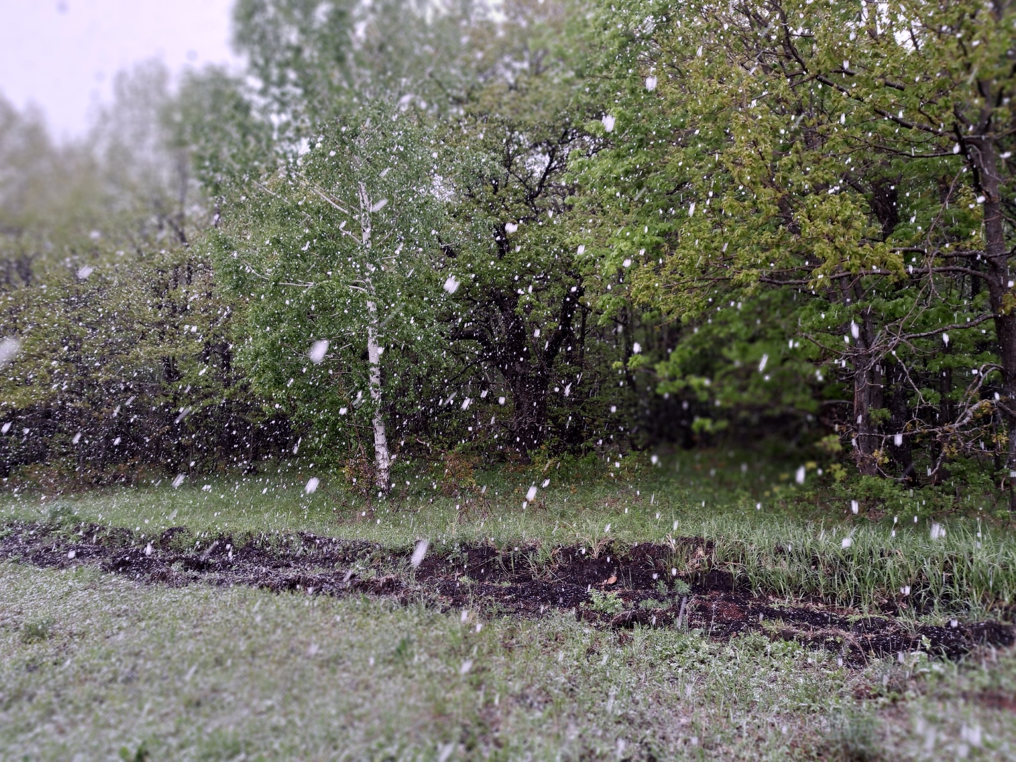 Походив по лесу пару часов, услышали странный шелестящий шум. Это посыпала снежная крупа. Было решено прервать поиски грибов и возвращаться домой.