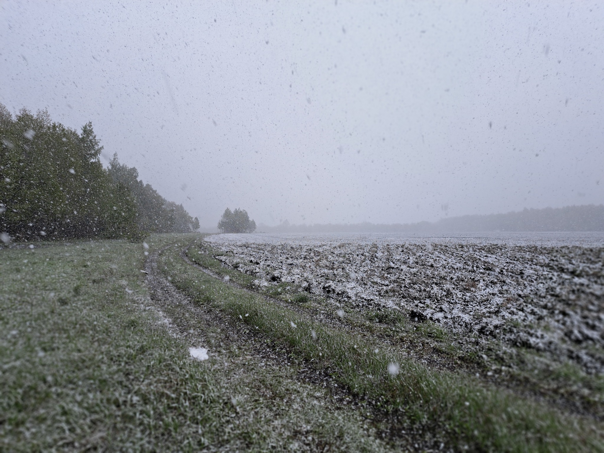 Выходим из леса, а снег все усиливается.