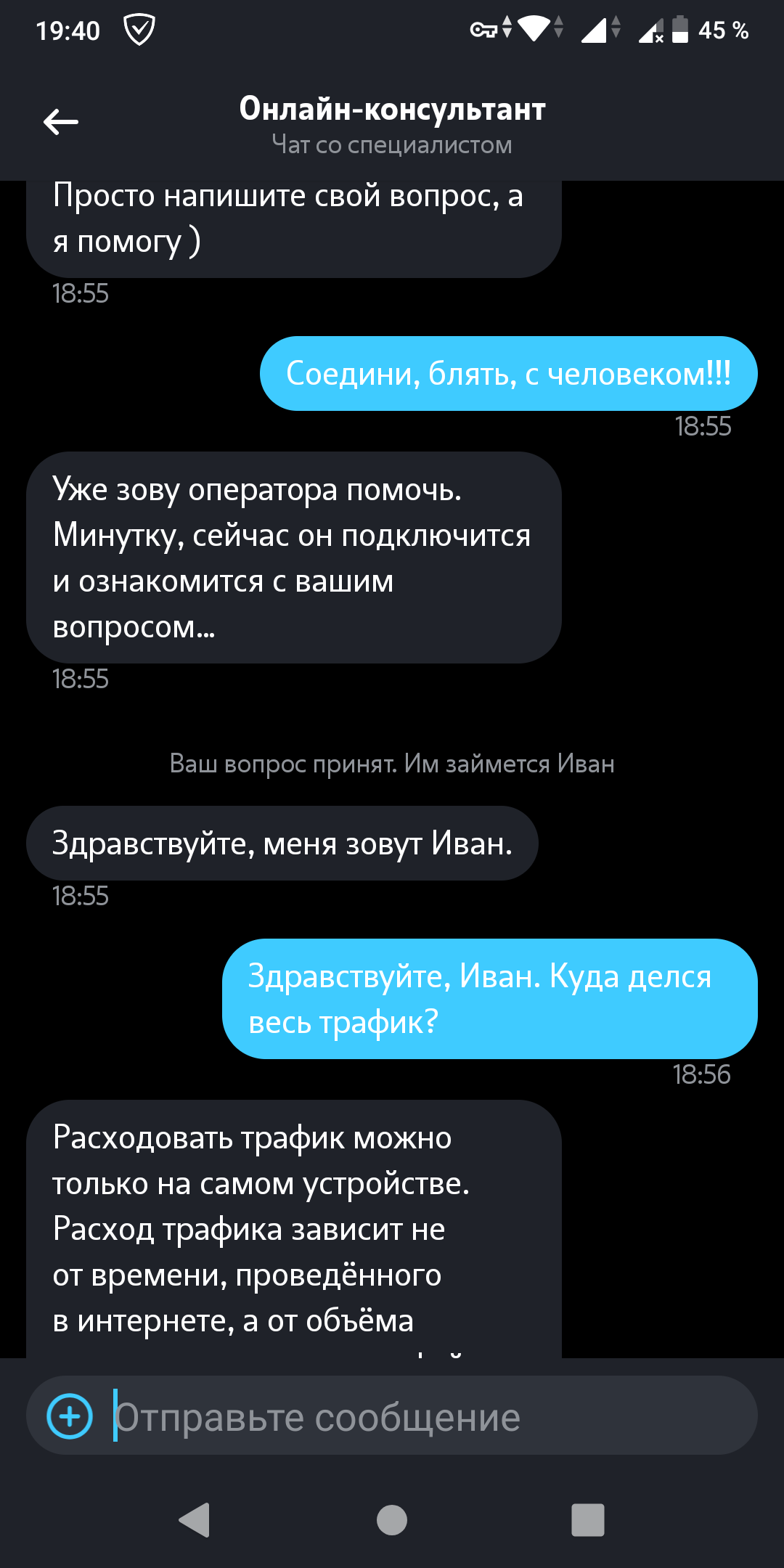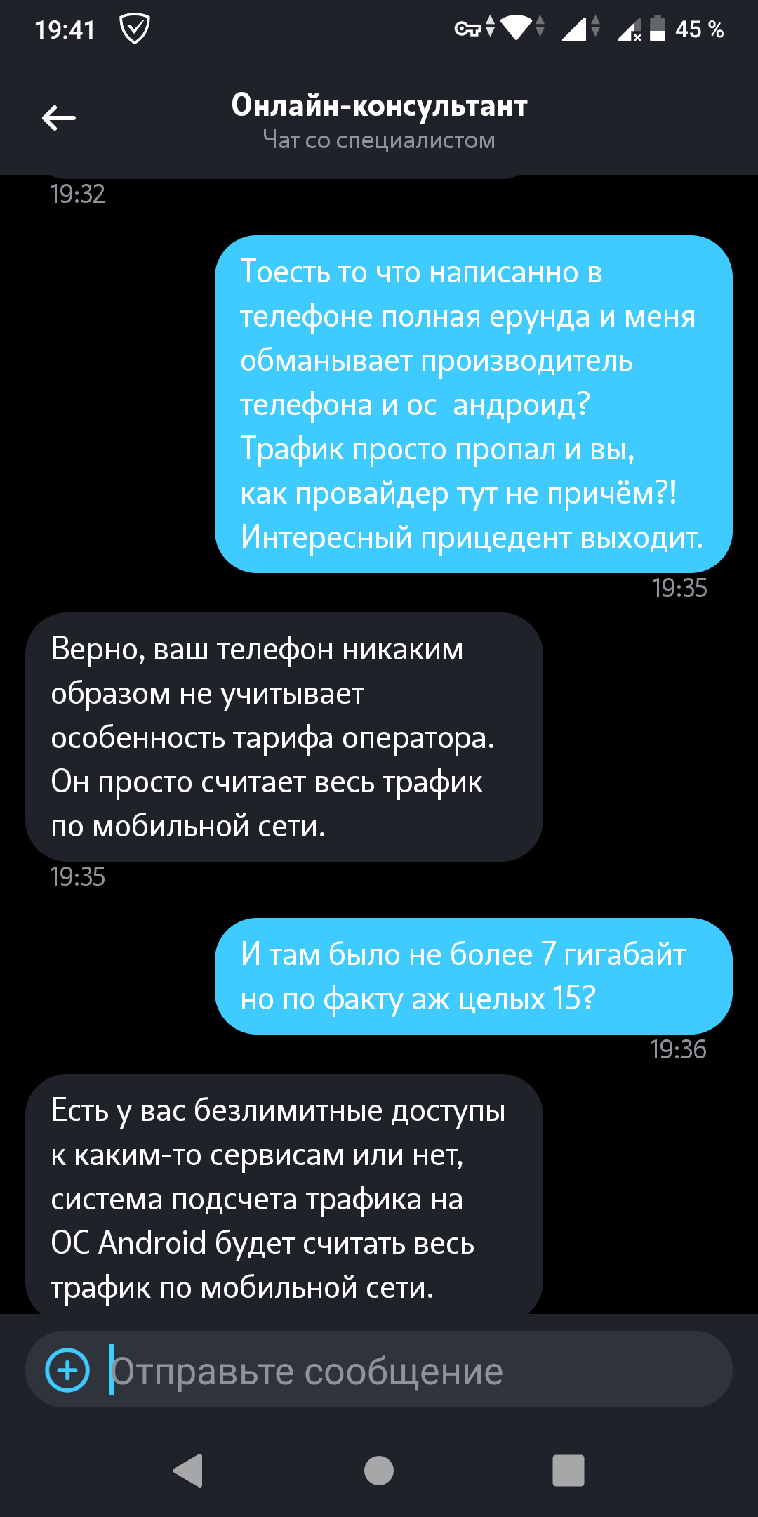 Далее переписка с оператором Теле"мать его за ногу"2два.