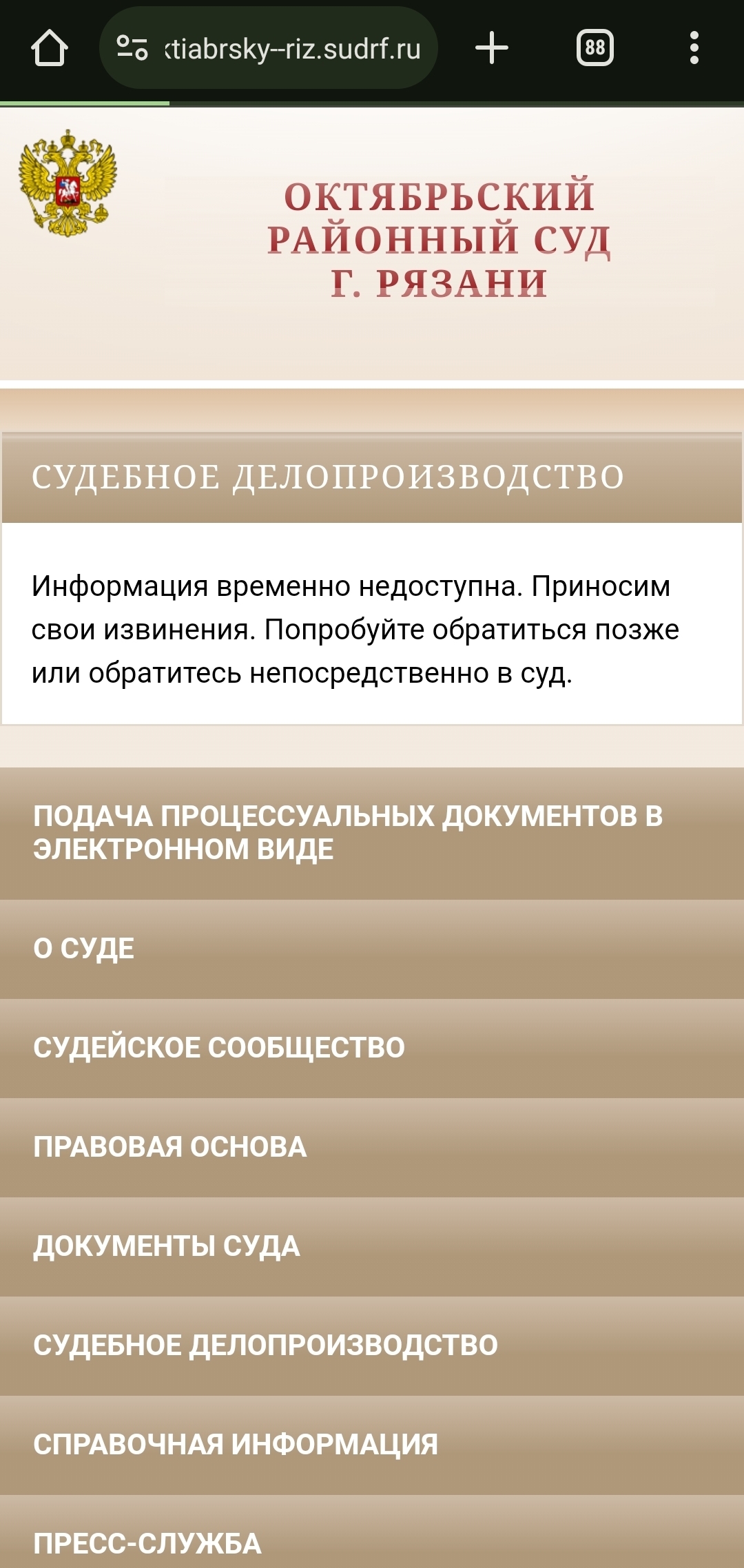 Интересно, это сайт уронили? Хотя всё работает остальное. Или суд так оперативно среагировал на шумиху, начавшуюся вокруг дела?