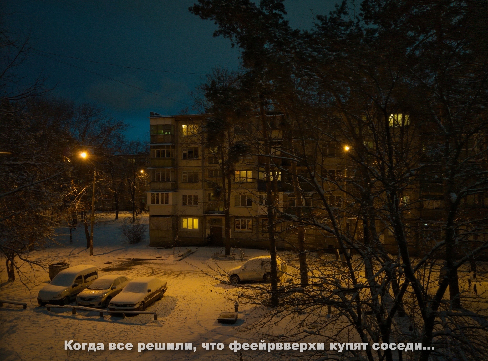 А вообще, тенденция такая, что из года в год, где то с 2014 года, запускают всё меньше пиротехники. У нас мини квартальчик в четыре дома. Из двух больше никто не выходит стрелять. Остальные тоже резко подсократили расходы на фейерверки.