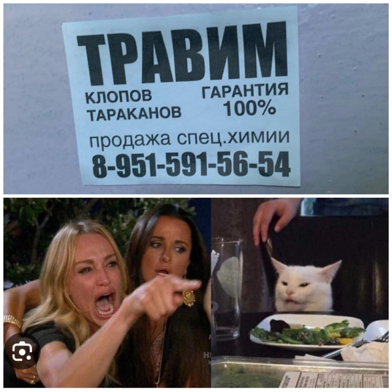 Molo4ko228 Юмор Осталось теперь только выбрать с кем лучше с клопами или тараканами 2 года назад [моё] Мемы Кот Спор Крик души Клопы Тараканы Дезинфекция Дератизация Две женщины орут на кота Ещё 0