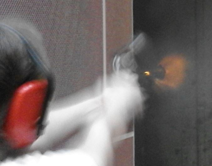 тут пришла мысль, что если в камере телефона матрица снимает кадр снизу вверх, то она могла сначала поймать пулю, а потом догнать ствол, когда тот стал замедляться. и получилось, что в одном кадре совместились две позиции.