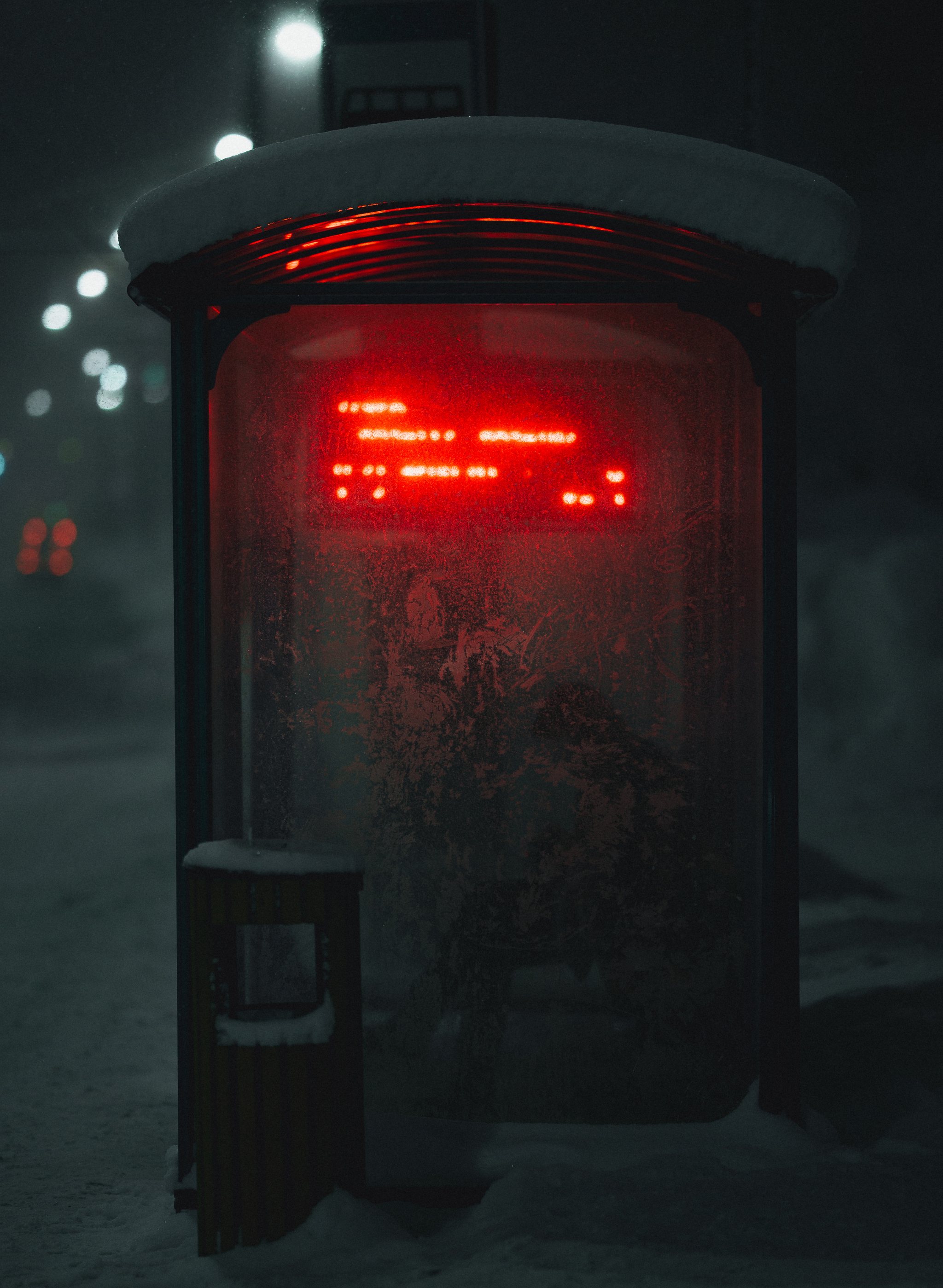 Для кого-то это просто остановка, а для кого-то смысл сделать хороший кадр. Всегда когда проезжаю мимо таких остановок замечаю этот красноватый цвет табло. Вместе с холодным, немного синим светом зимней ночи (между прочим комплиментарные цвета) может получится вполне неплохой кадр. Вот и в этот раз я решил, не проходить мимо и наконец сделать фото. Уже подходя понял что что-то получится: стекла на остановке были замерзшими и покрыты изморозью, а внутри сидел одинокий человек, ждущий свой транспорт. Это добавило к фотографии некую атмосферу уединения и размышлений.