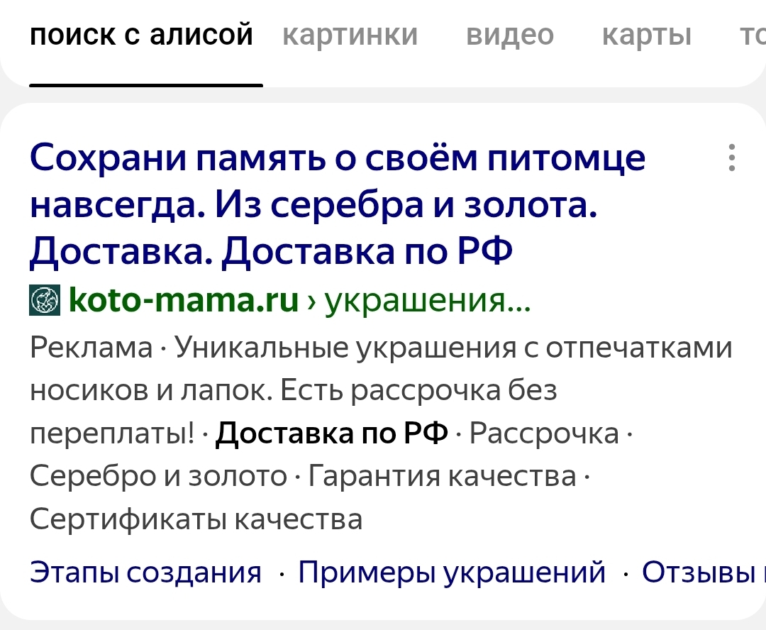 Samsin Оставь надежду всяк сюда входящий... 8 месяцев назад Запрос был "постоянная перхоть у чёрной кошки". Первой ссылкой была вот такая реклама. Ну и кто тут уже топит за ИИ везде и во всём?! Кото-мама если чо. Мама, блядь! Короче, ждём на запрос "у меня понос" рекламу ритуальных услуг. Ссуки! [моё] Жизненно Яндекс Раздражающая реклама Искусственный интеллект Мат Ещё 0