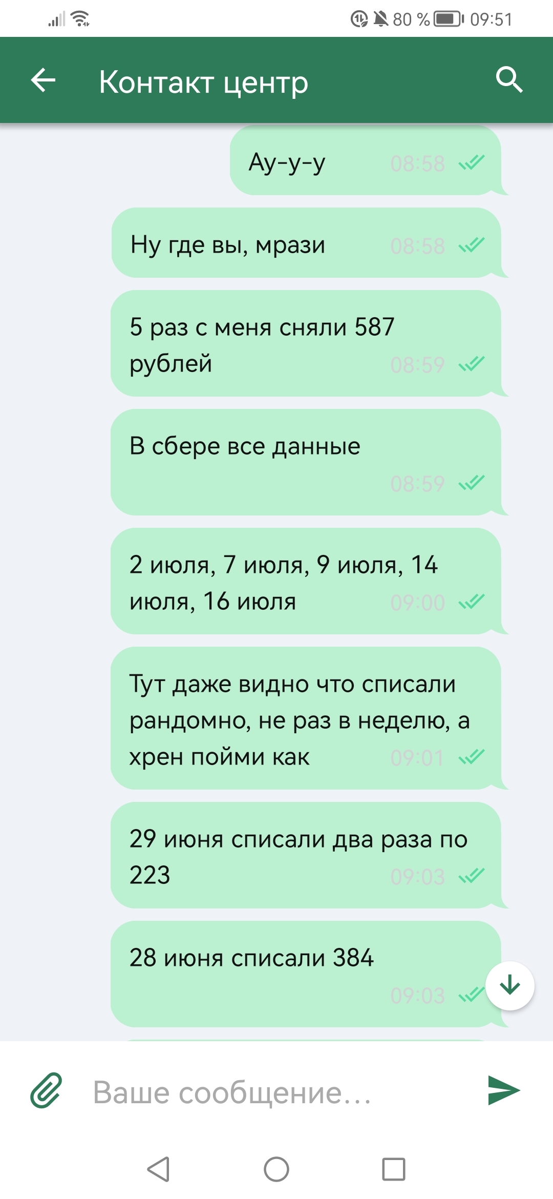 К сожалению я не заскринил финальный ответ поддержки, но вкратце они ответили так: мы все ваши два аккаунта отвязали от вашей карты, так что списывание денег прекращается, вернём вам деньги в течении 3 дней. Они правда вернули деньги, но только последние 587 рублей, я им написал могу ли я удалить приложение и не бояться что спишут деньги , они ответили что да можно удалить...и я не планировал сегодня писать этот пост, если бы не увидел в Сбербанке случайно опять списание от них на 587 рублей 🤬