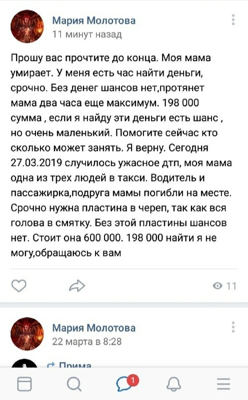 116) Мошенники придумали схему со сбором денег для неизлечимо больных: