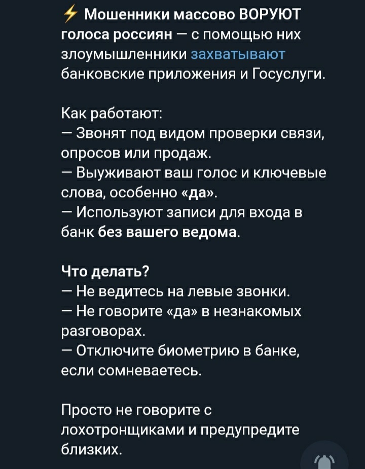 12) новая уловка на запись голоса для хищения денег: