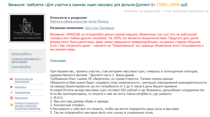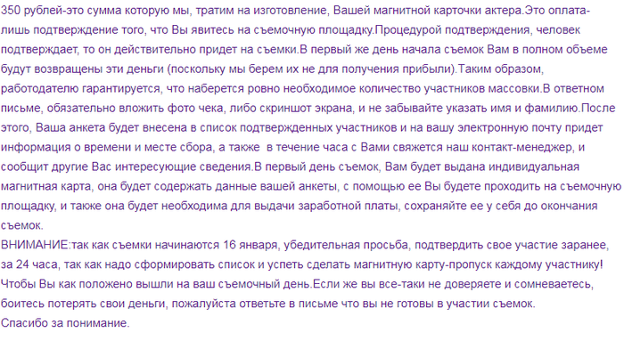 P.S. На другом сайте, под этой вакансией, было предупреждение следующего характера: