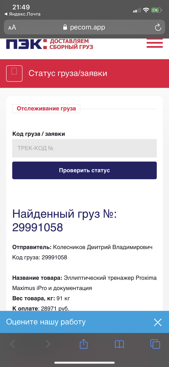 В общем отправил уже чисто ради интереса почту. А потом все пошло по классическому сценарию разводилова, и не раз было здесь на Пикабу. И вот что на неё пришло. На оригинальном сайте естественно трек не бился. С фишингового перекидывает на родной сайт пэк если нажать в другие разделы.
