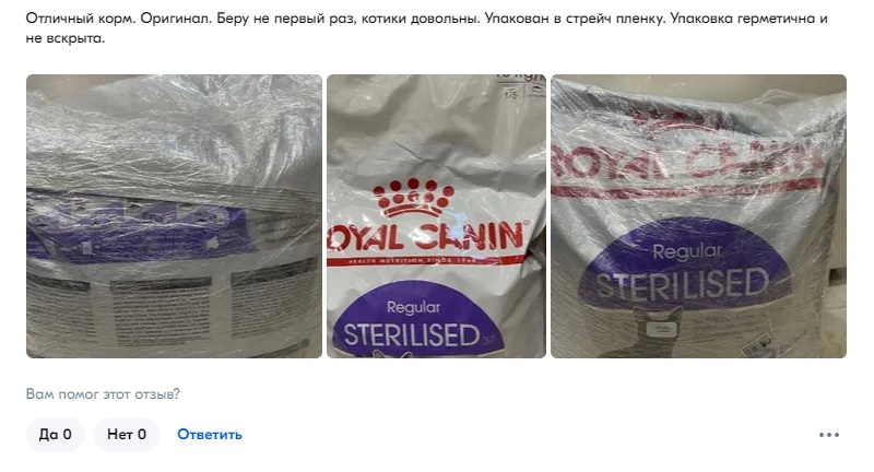 Моя история такая, я приобрел 8 мешков кошачьего корма Royal Canin для кошачьего приюта, цена была ниже чем у аналогичного товара у других продавцов, что меня и подкупило. Плюс у продавца были положительные отзывы ( подозреваю что это все накрутка).
