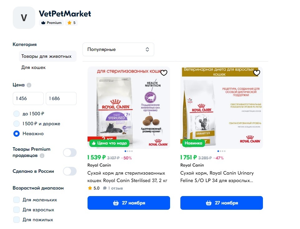 По поводу продавца, магазин называется VetPetMarket, указано Premium продавец, все дела. По факту шарага какая-то, ИП зарегистрировано в Перми.